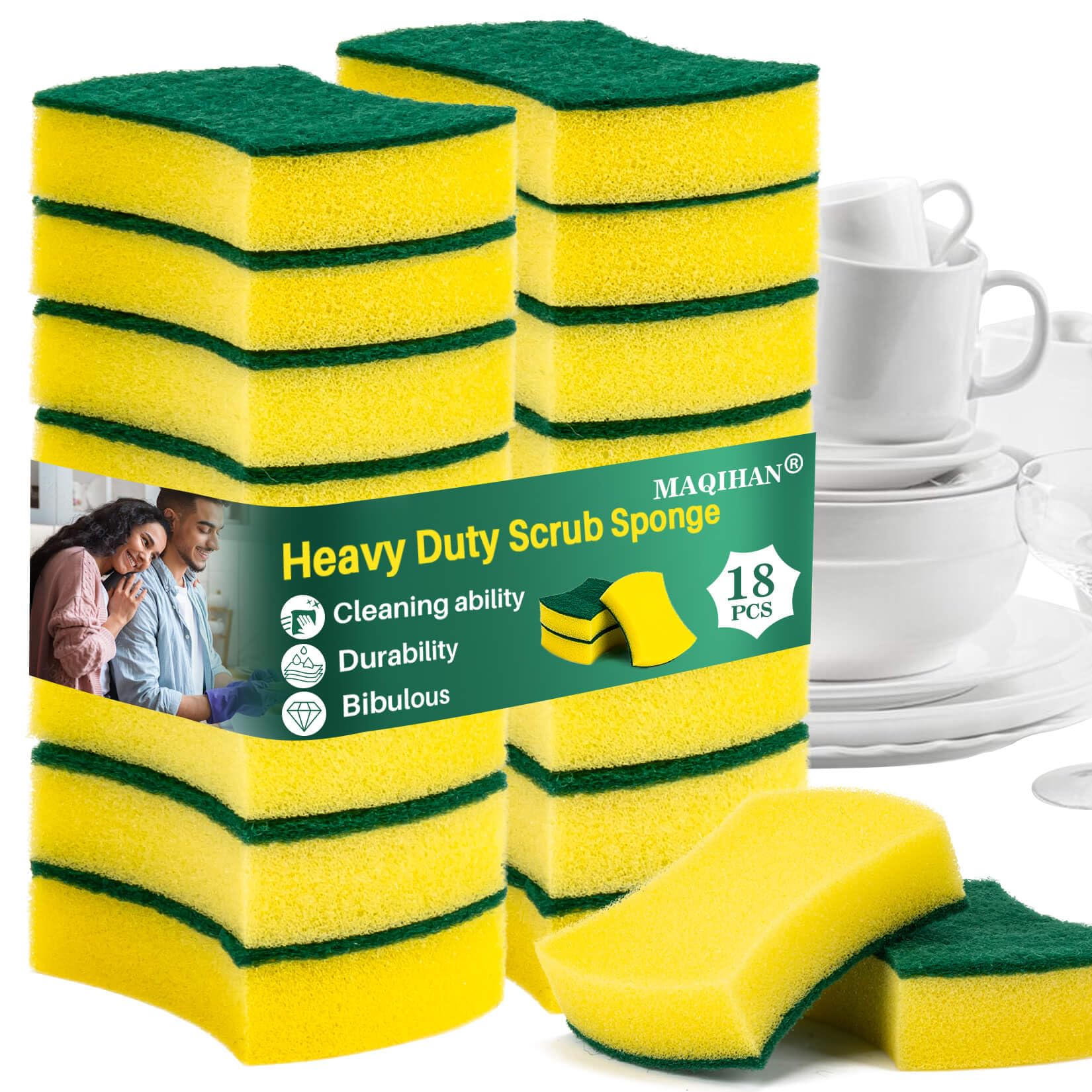 Esponja de limpieza resistente de 18 piezas – Esponja de limpieza reutilizable de doble cara para platos de cocina, ollas, sartene