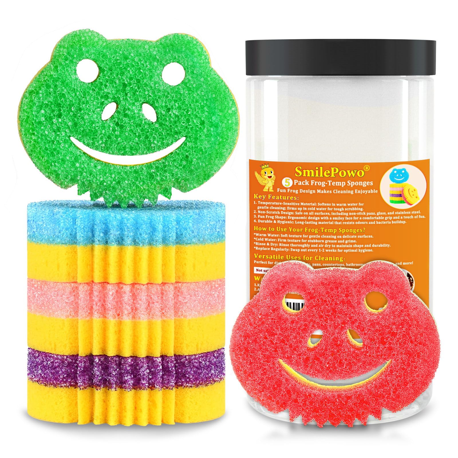 SmilePowo Paquete de 5 esponjas multifuncionales de rana de doble cara, esponja de cocina de doble cara controlada por temperatura