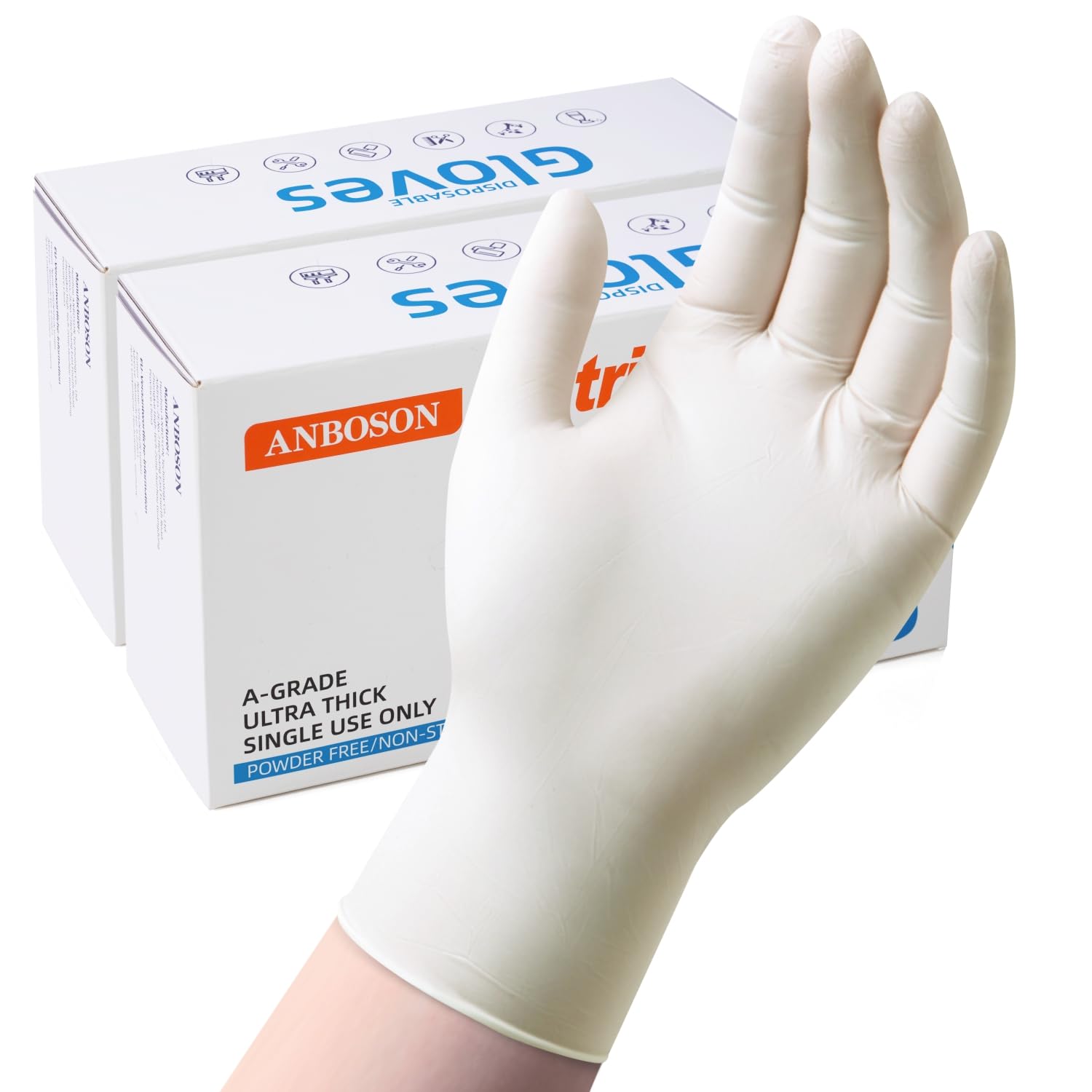 MED PRIDE Guantes de látex para exámenes médicos, 5 mil de grosor, caja pequeña de 100 sin polvo