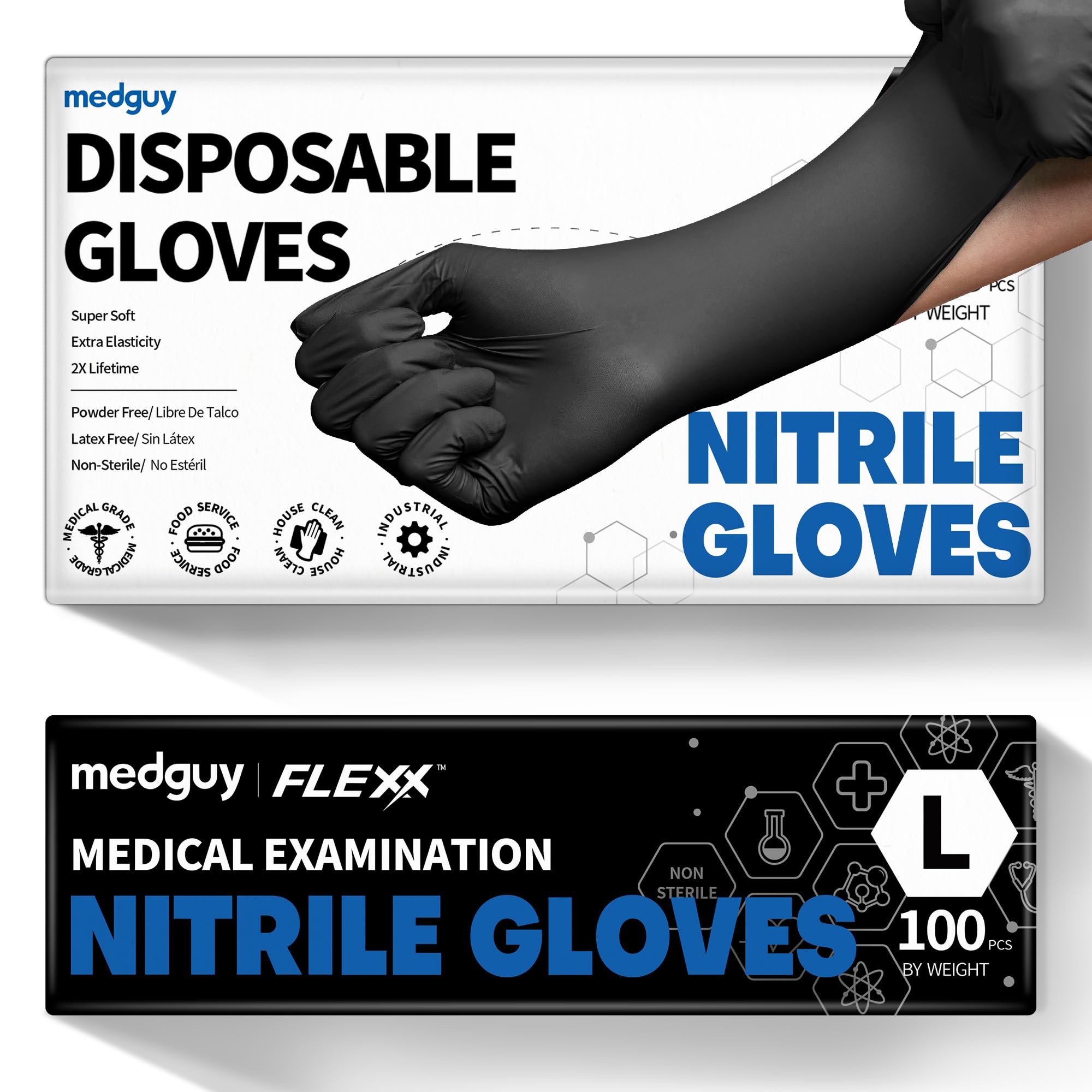 FINITEX Guantes desechables de nitrilo negro para examen médico, 100/1000 unidades, guantes de 6.3 mil sin polvo, sin látex, guant