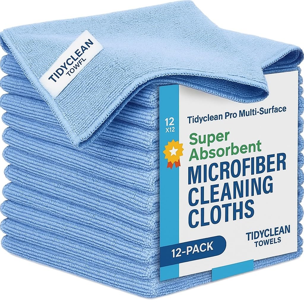 Tricol Clean Paño de limpieza de microfibra, 16 x 16 pulgadas, paquete de 12 trapos de limpieza ultra gruesos, súper absorbentes,