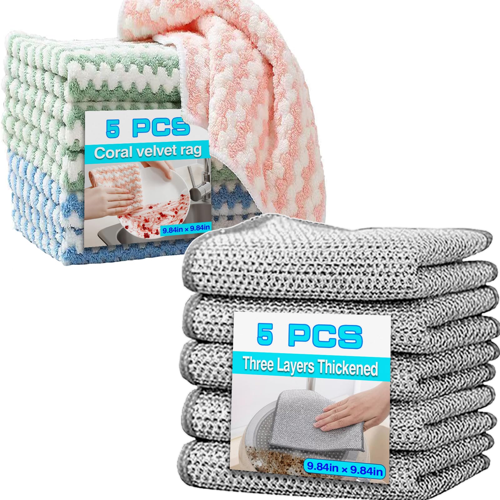Paquete de 10 paños de limpieza reutilizables para el hogar, toallitas de acero inoxidable y paño de limpieza de microfibra, juego