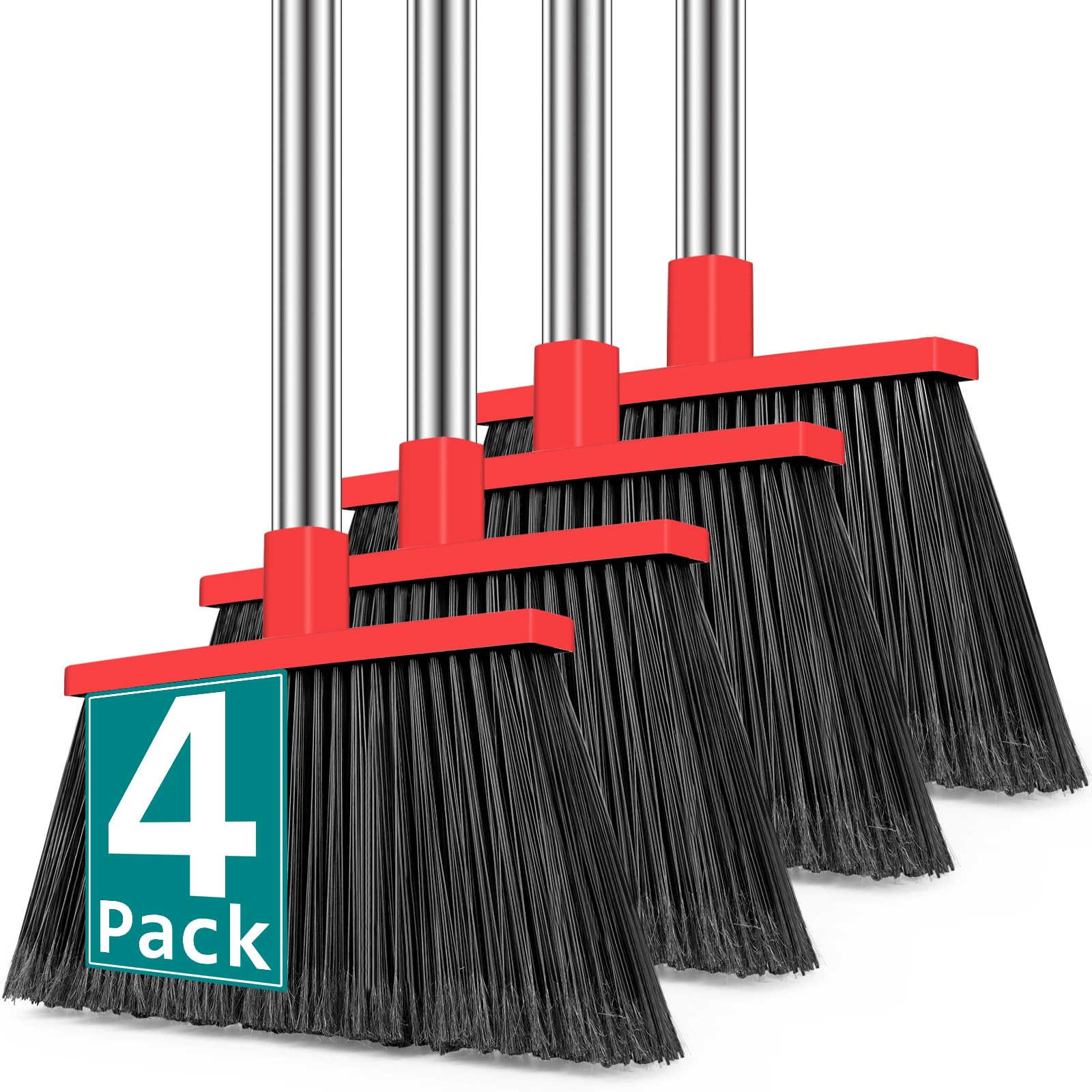 4 escobas resistentes para exteriores, mango de acero inoxidable de 58 pulgadas de largo, escoba angular de cerdas duras para piso