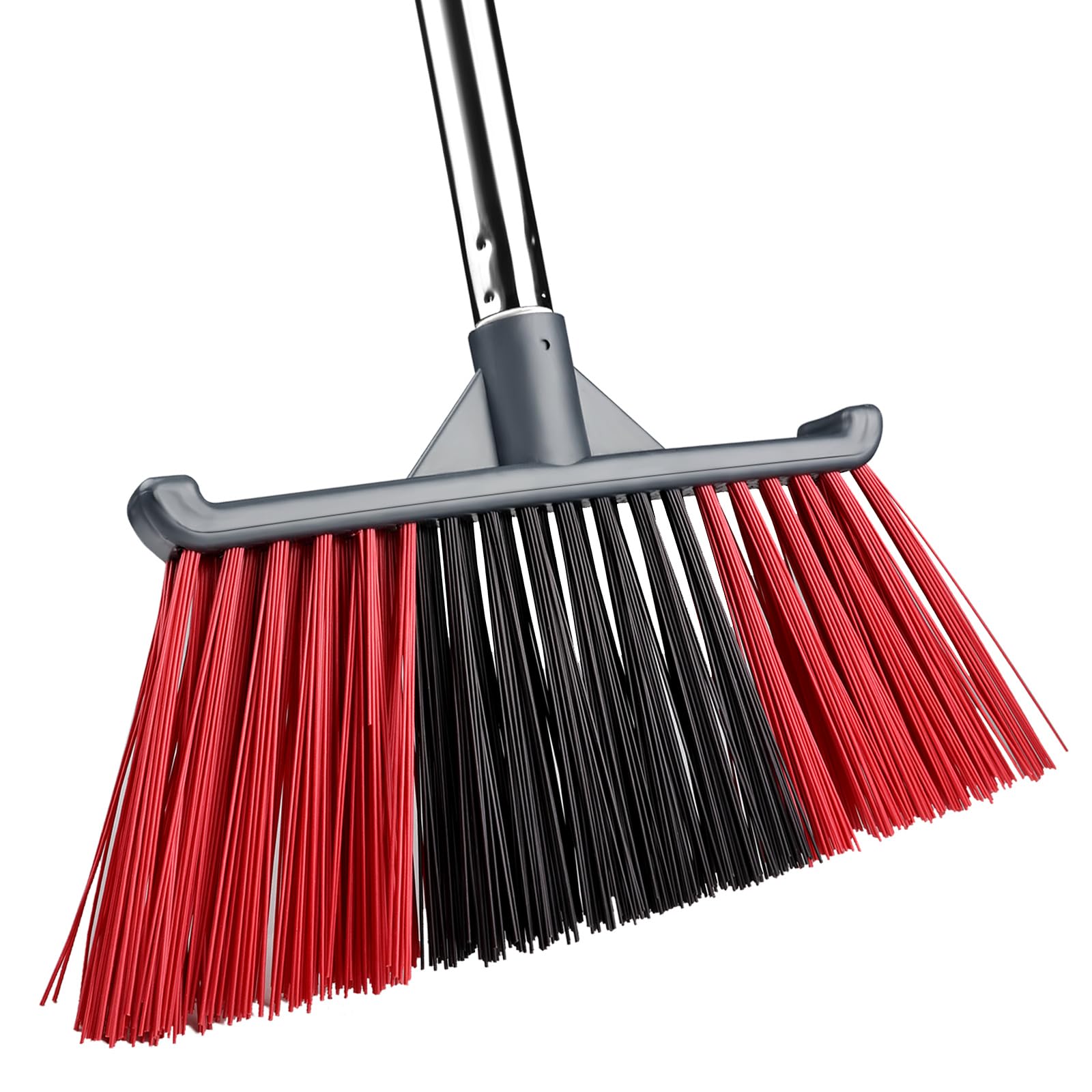 Juego de escoba resistente con recogedor para interiores y exteriores, doble propósito, cerdas rígidas, escoba angular comercial y