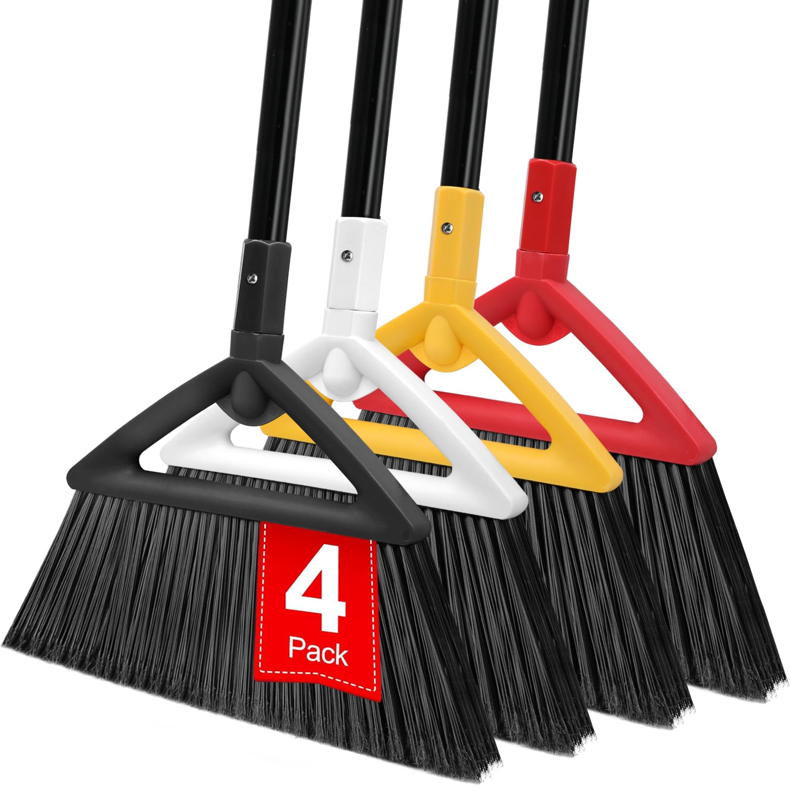4 escobas interiores y exteriores, escobas para barrer interiores, escoba de cocina resistente con poste largo, escoba angular par