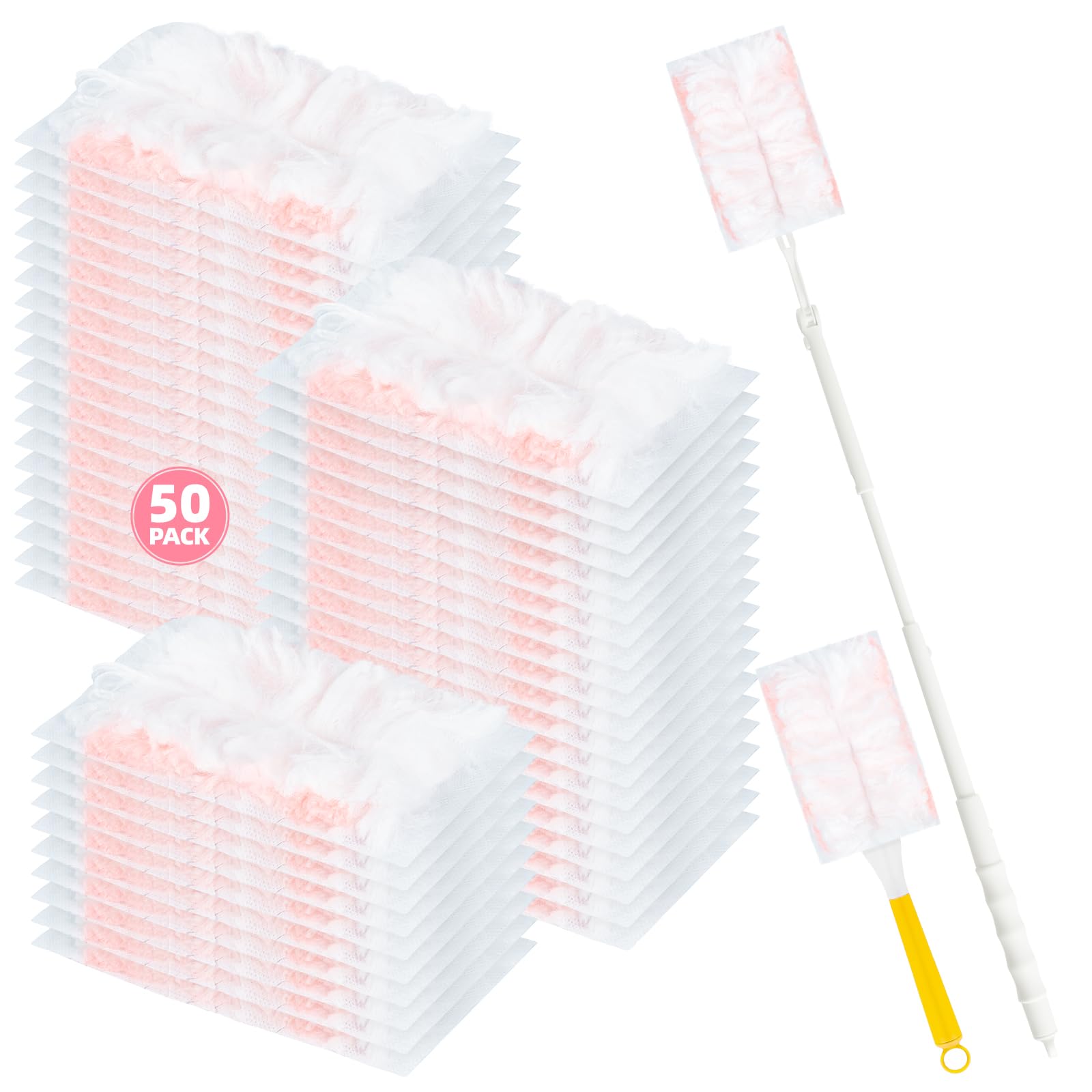 52 repuestos de plumero desechables para limpieza, repuestos de plumero de 180° compatibles con Swiffer (rosa, 50 cepillos de elim