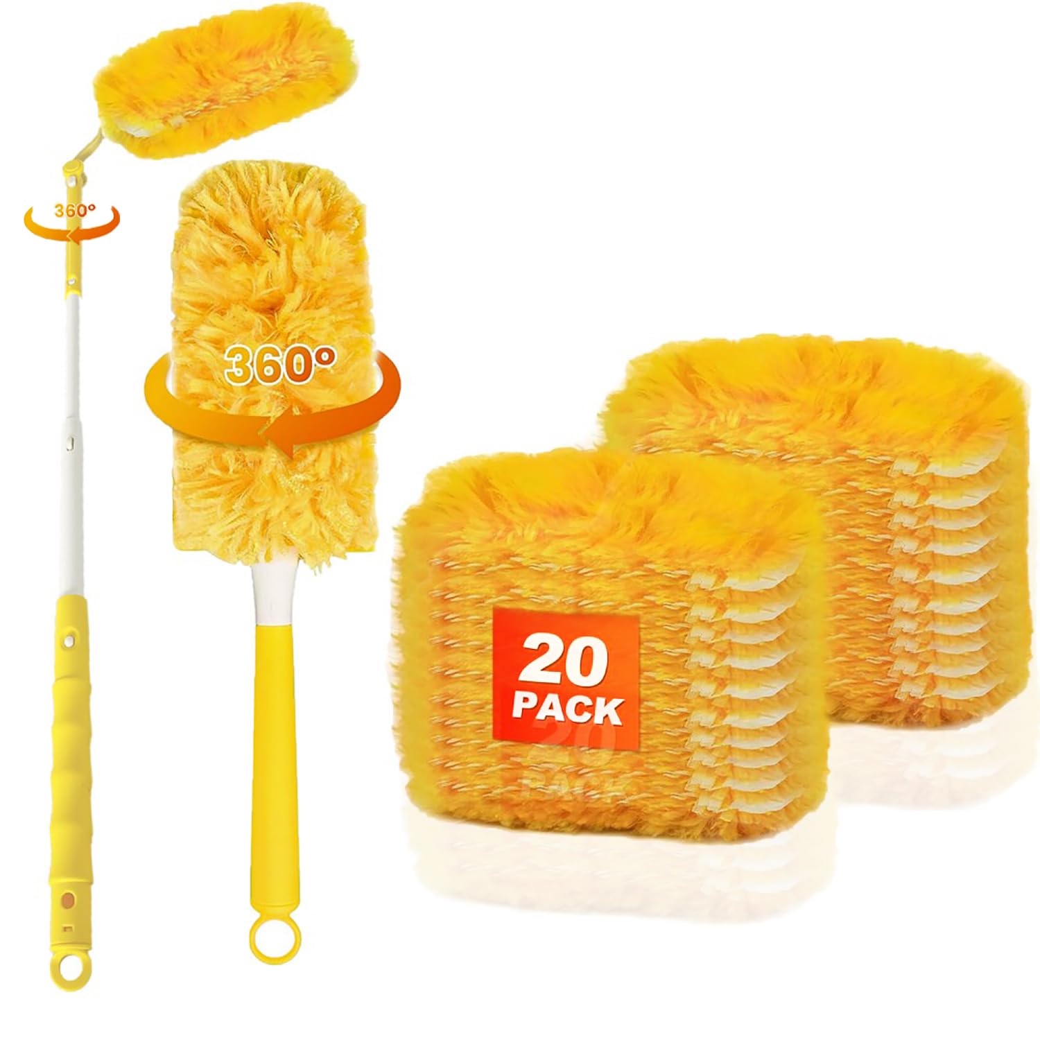 Paquete de 20 repuestos de plumero compatibles con Swiffer Duster, kit de polvo resistente de 360° con 1 mango extendido y 1 mango