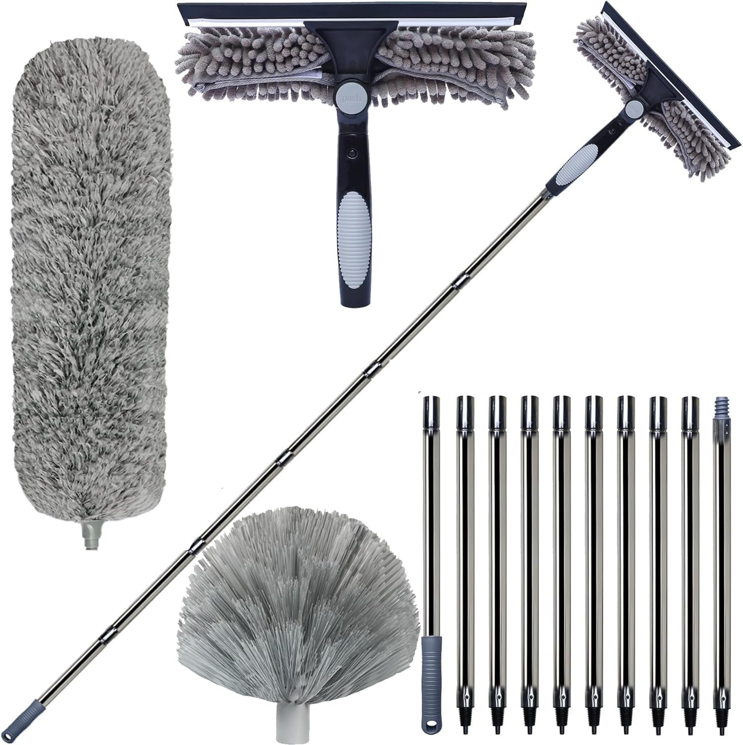Webster – Kit de plumero y telaraña, alcanza techos altos de 18 a 20 pies con poste de extensión y 3 cabezales multiuso