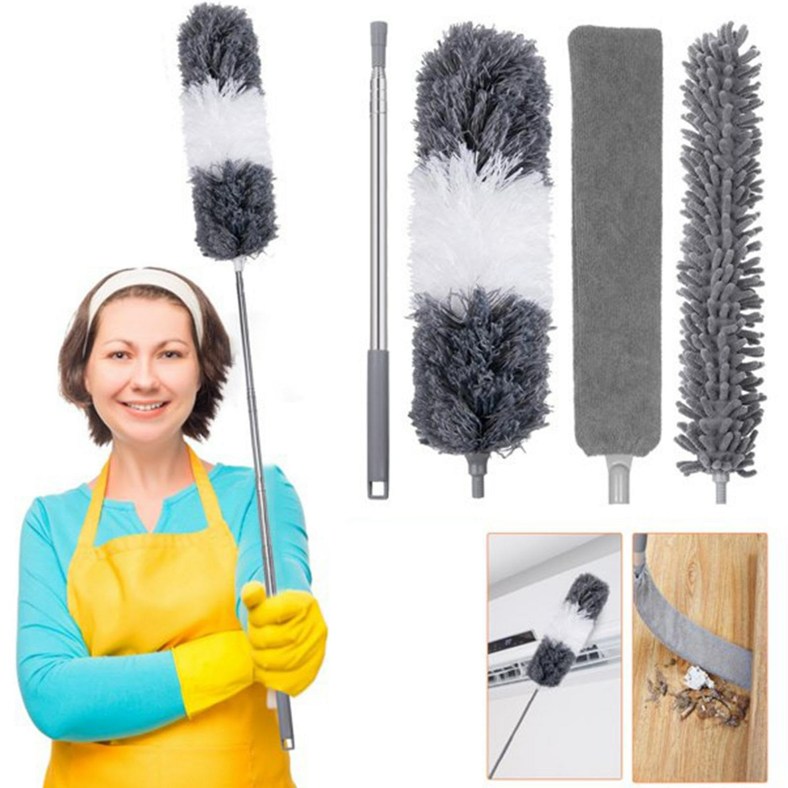 Kit de plumero de microfibra, 4 plumeros lavables con poste telescópico para limpiar techos, ventiladores, persianas, muebles, kit