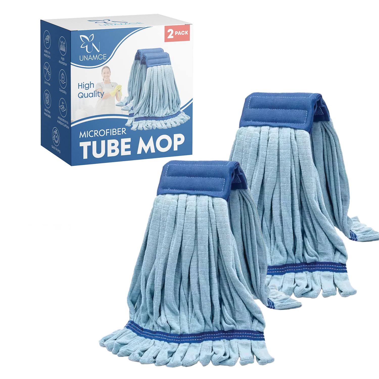 Paquete de 2 cabezales de trapeador de microfibra de alta resistencia | Robusto, azul, lavable a máquina, extra absorbente, extra