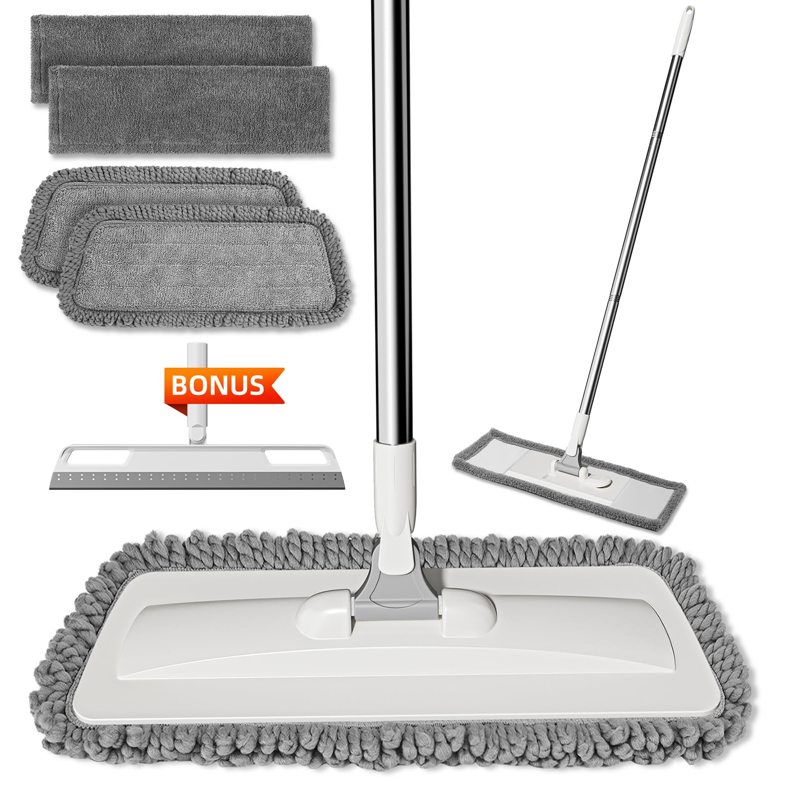 MR.SIGA Trapeador profesional de microfibra para madera dura, laminado, limpieza de suelos de azulejos, mango de acero inoxidable,