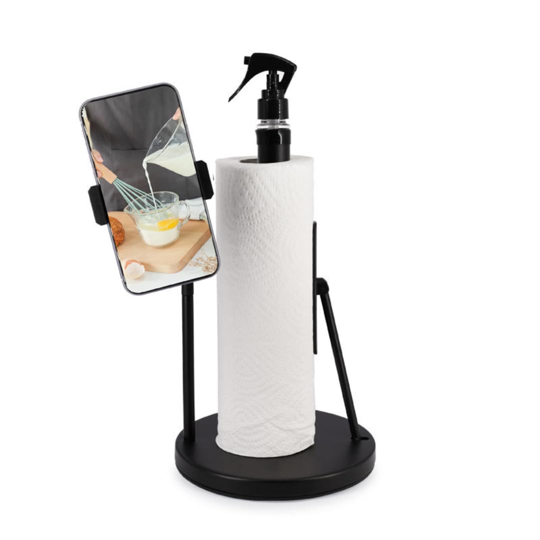 Soporte para toallas de papel con botella rociadora, soporte dispensador de toallas de papel para encimera con rociador en el cent