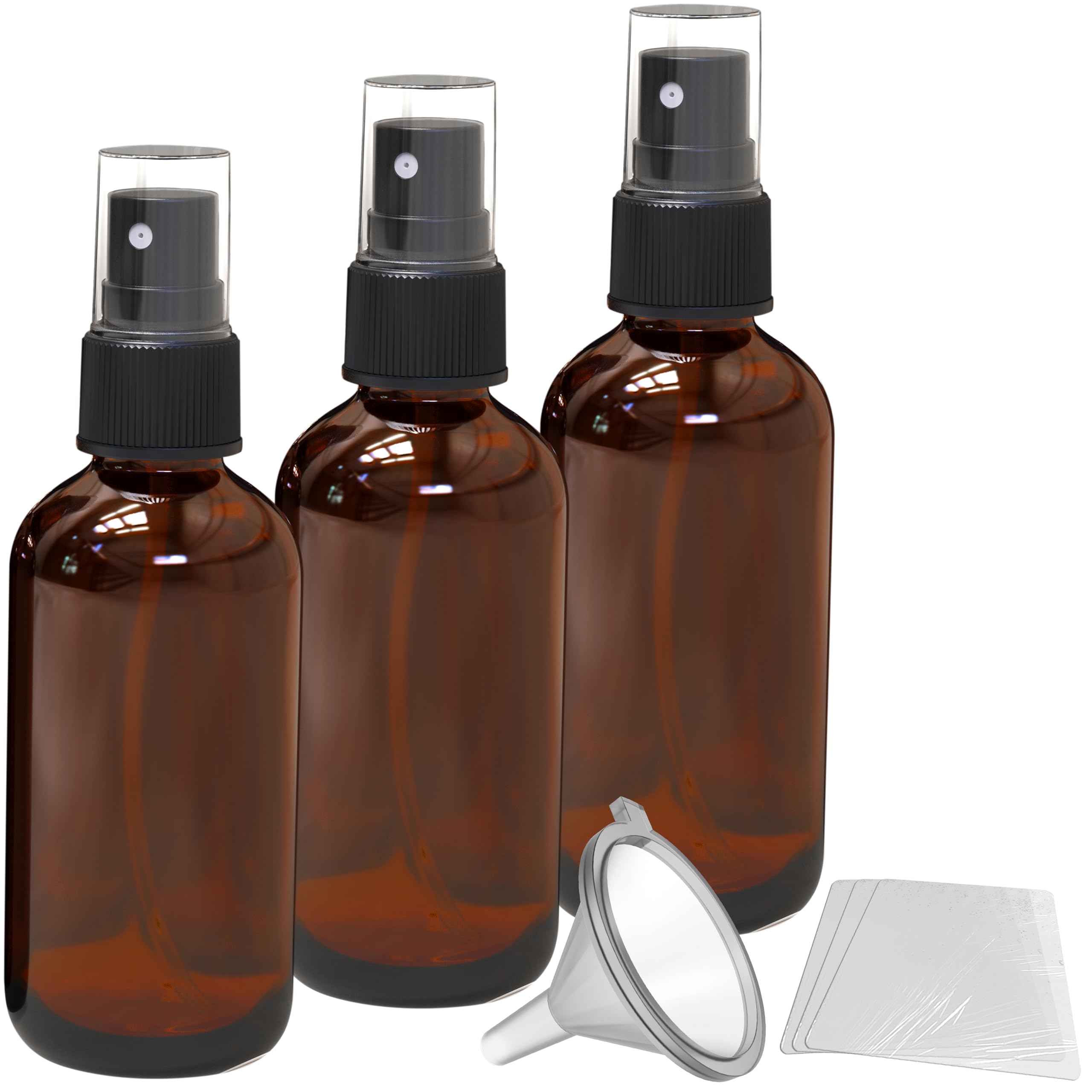 Nevlers Paquete de 3 botellas de spray de vidrio ámbar de 4 onzas | Juego de botellas pequeñas de vidrio con envolturas retráctile