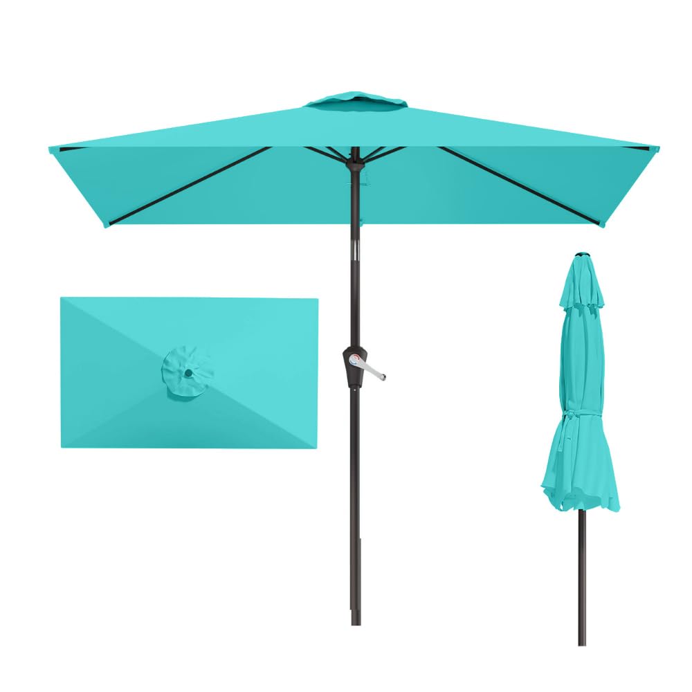 Sombrilla rectangular de 6.5 x 10 pies para patio, con protección UV, botón de inclinación y manivela para elevar, sombrilla de me