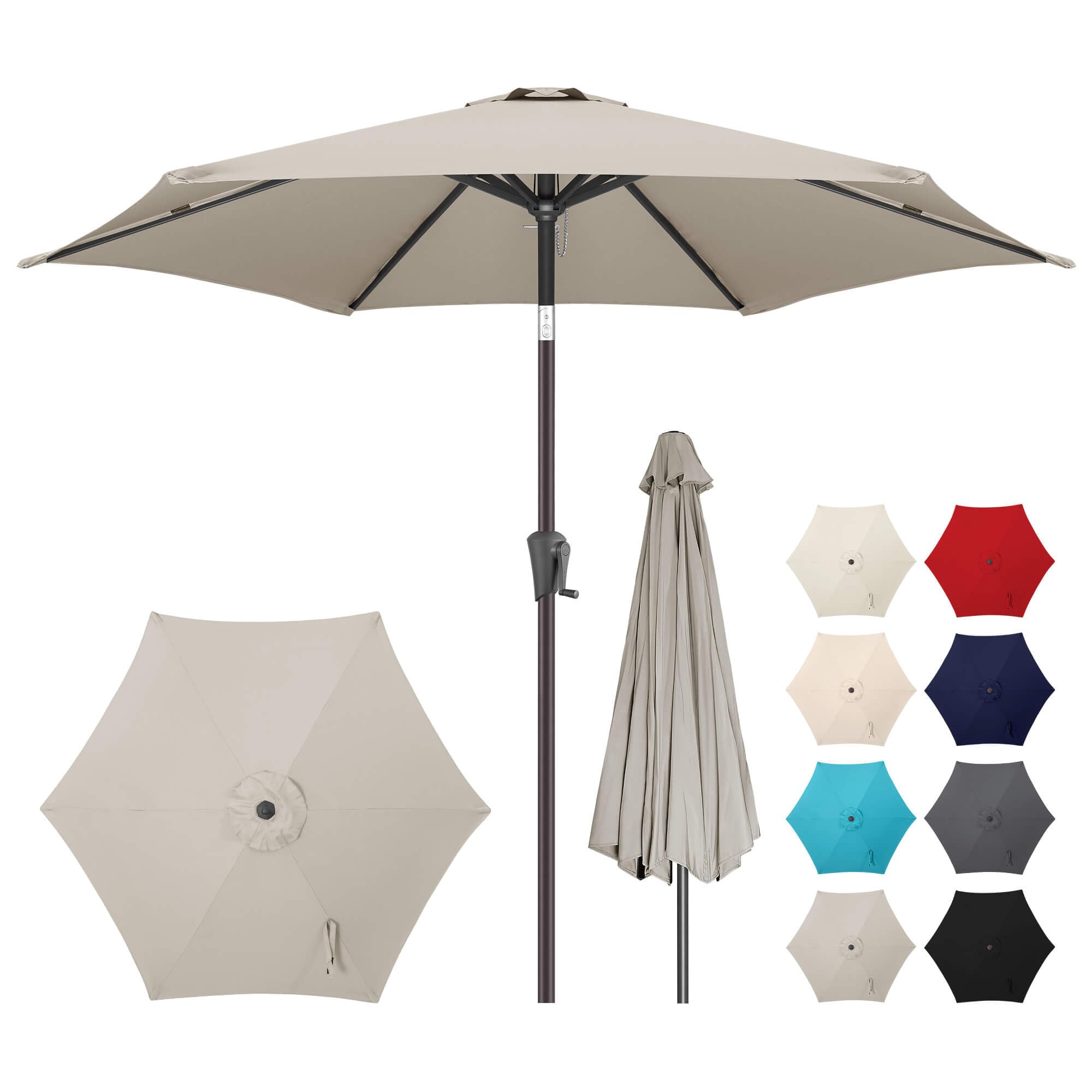 Sunnyglade Sombrilla de patio al aire libre de 9 pies, sombrilla de mercado y mesa con 6 varillas resistentes y sistema de manivel
