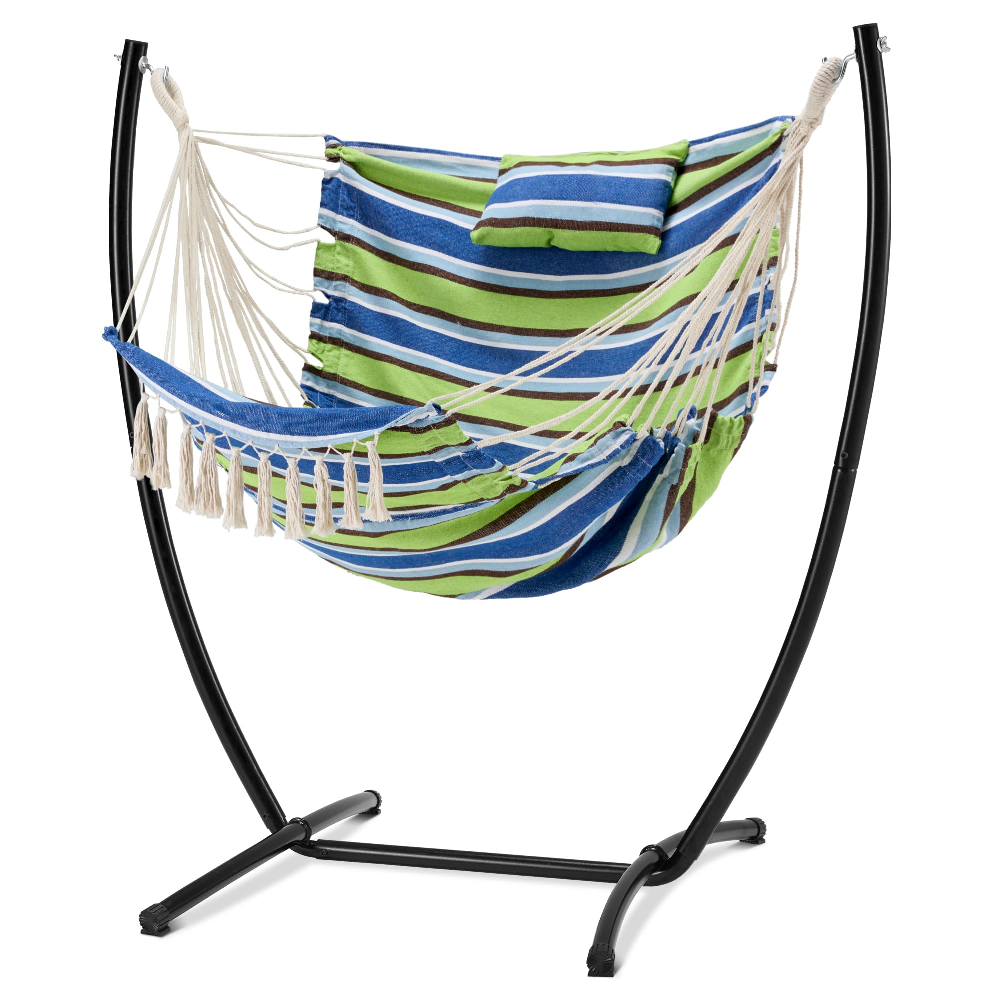 Silla hamaca con soporte, silla colgante de estilo bohemio resistente con soporte, para interiores y exteriores, con reposacabezas