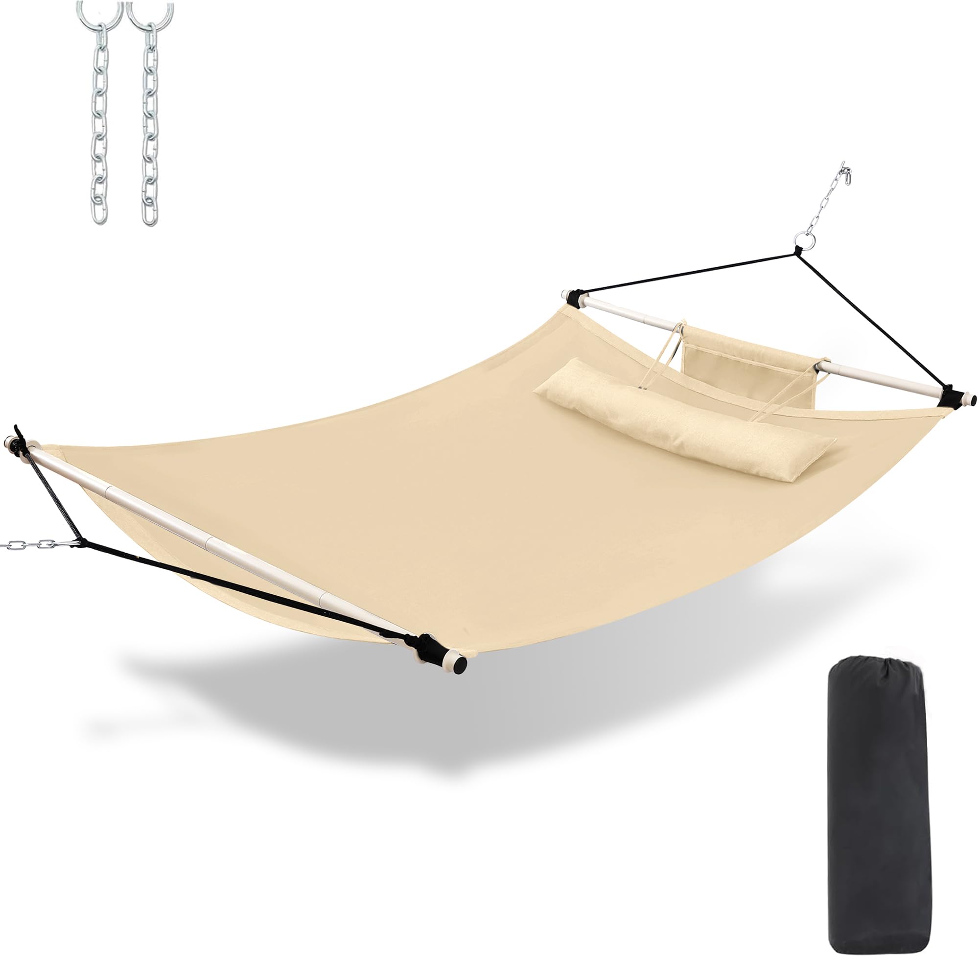TegerDeger Hamaca antivolteo de 12 pies, hamaca grande de capacidad de 450 libras con barra esparcidora de hierro y cuerda de nail