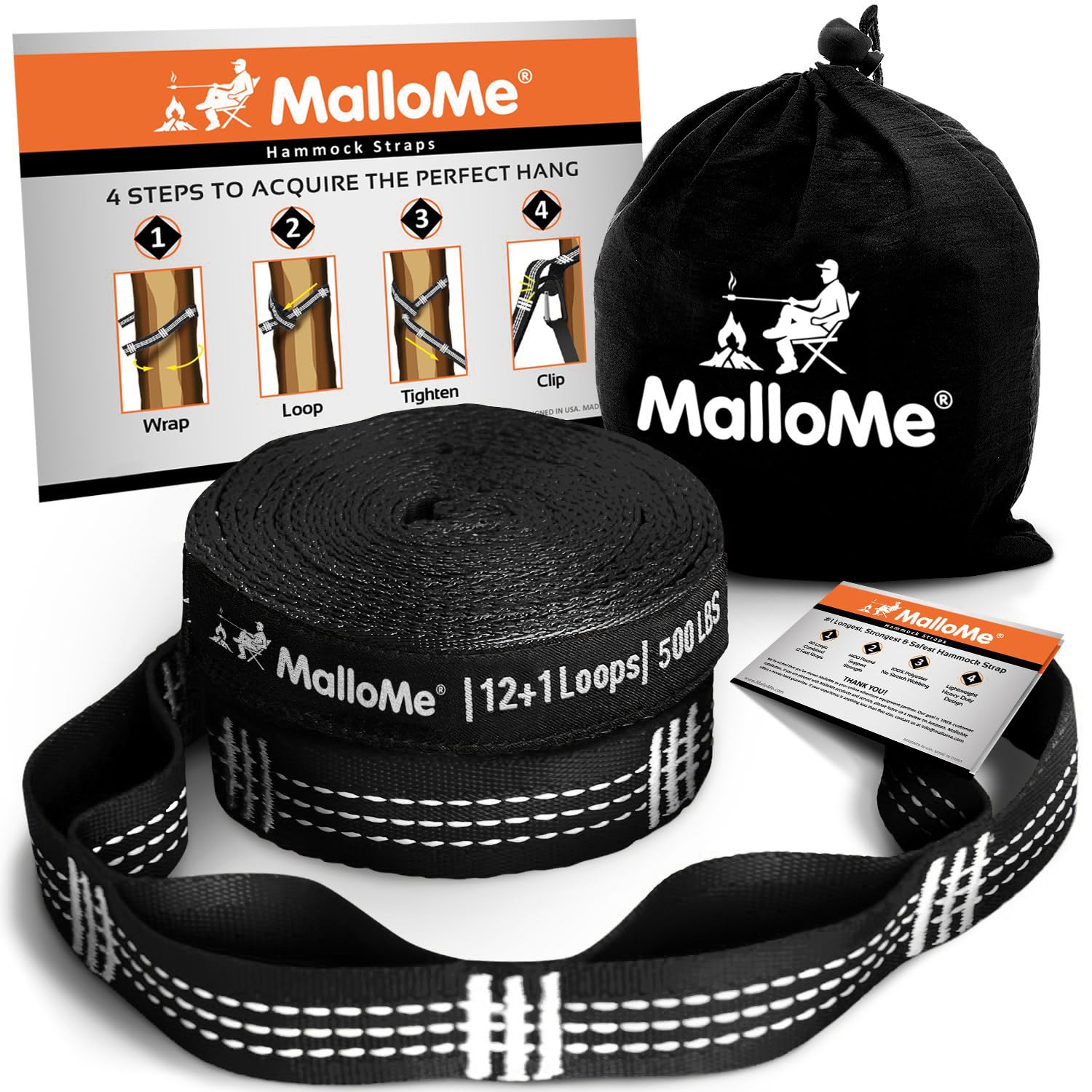 MalloMe Correas de hamaca XL – Juego de correas para hamaca para árbol (2 correas incluidas 500 libras cada una) 26 bucles y siste