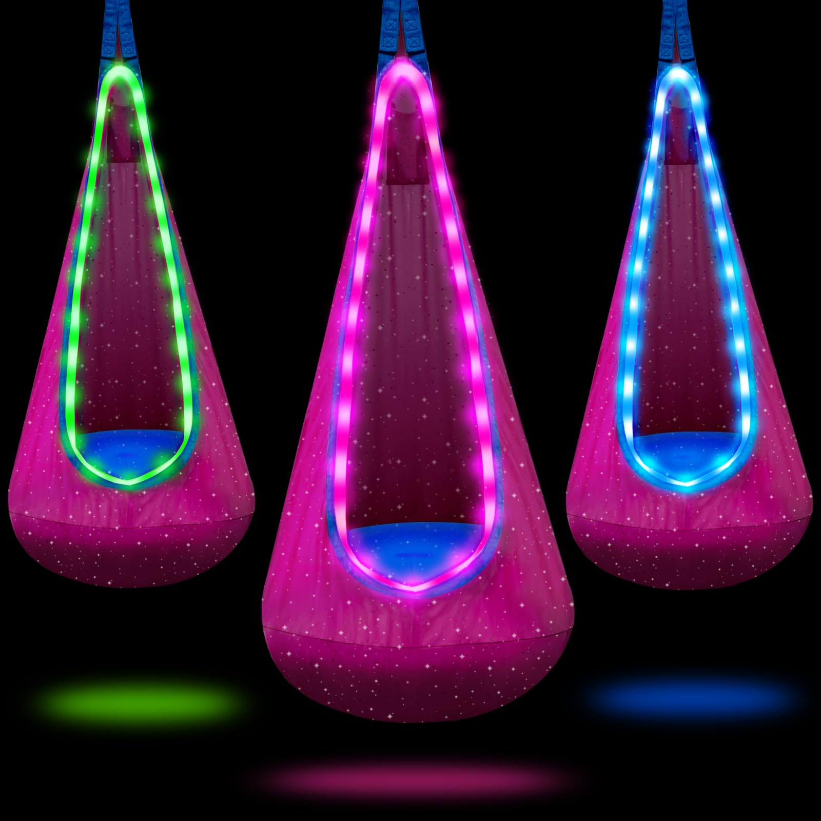 Asiento columpio para niños, columpio sensorial con múltiples modos de luz LED, almohada inflable y correas ajustables, hamaca col
