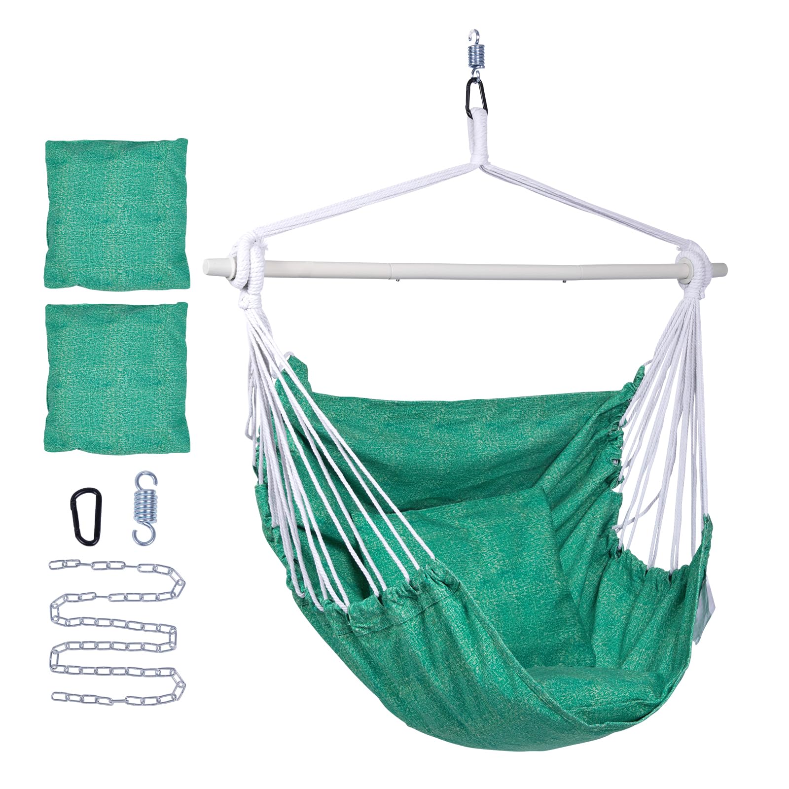 ADVOKAIR Hamaca colgante silla columpio grande con reposapiés y herrajes, máximo 500 libras, barra de extensión de acero con antid