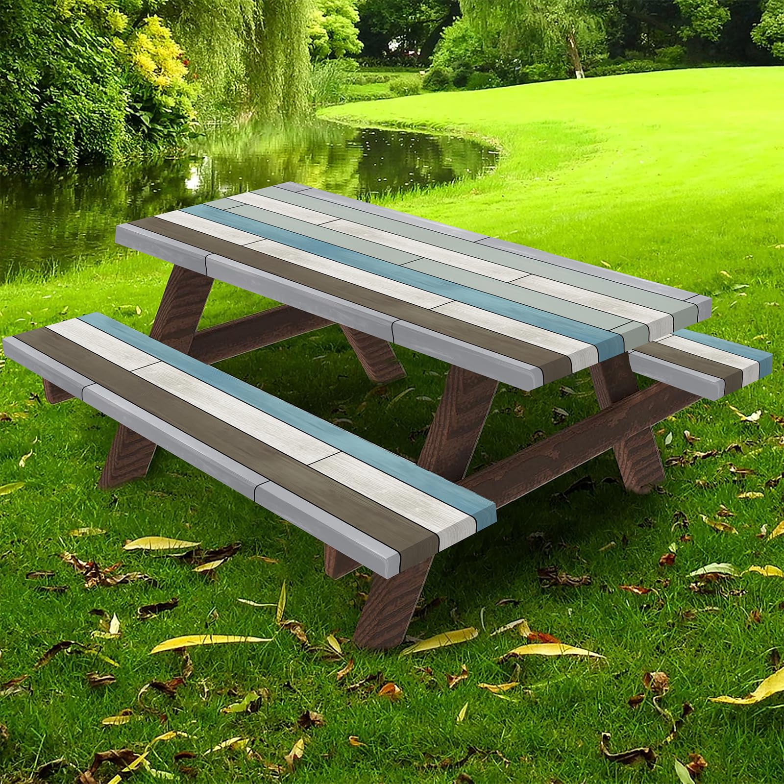 Vaukki Mantel ajustable para mesa y banco de patio, mantel rectangular para mesa de picnic con fundas para banco, elástico, imperm