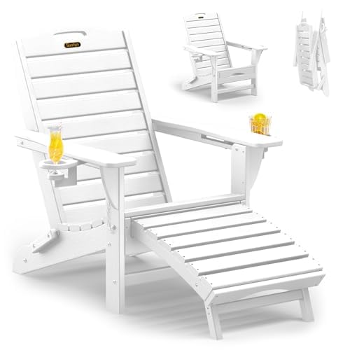 Ciokea Silla plegable Adirondack con otomana retráctil para fogata, silla de patio con reposapiés extraíble, resistente a la intem