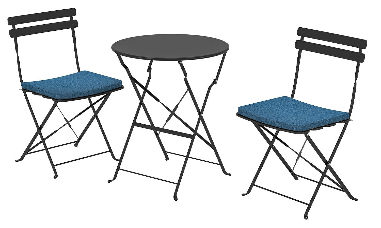 Juego de bistró para exteriores con 2 sillas acolchadas y muebles plegables de metal negro para patio de 3 piezas y mesa de cocina