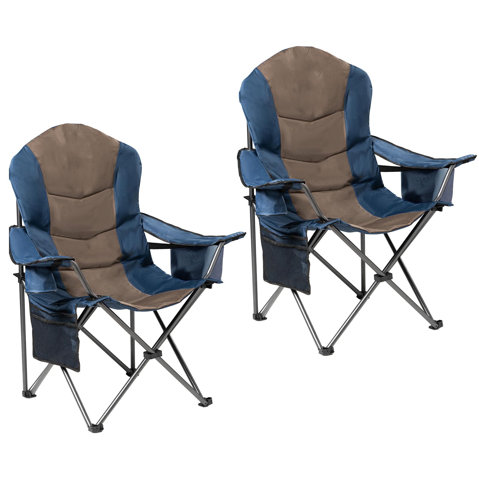 EMERIT Paquete de 2 sillas de campamento acolchadas de gran tamaño, 350 libras, silla plegable cuádruple con brazos, sillas plegab
