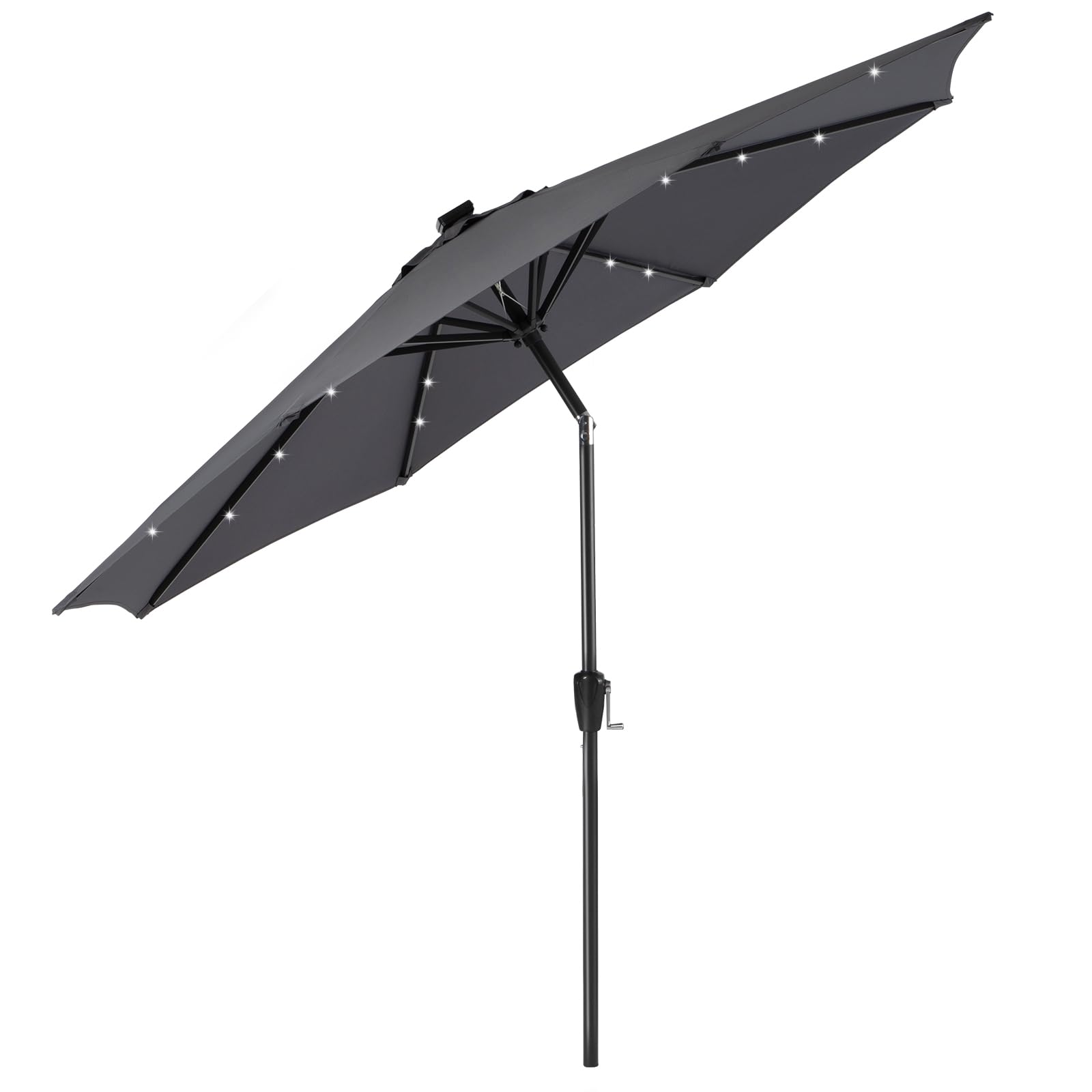 Sombrilla solar de patio de 9 pies con 32 luces LED, inclinación y manivela