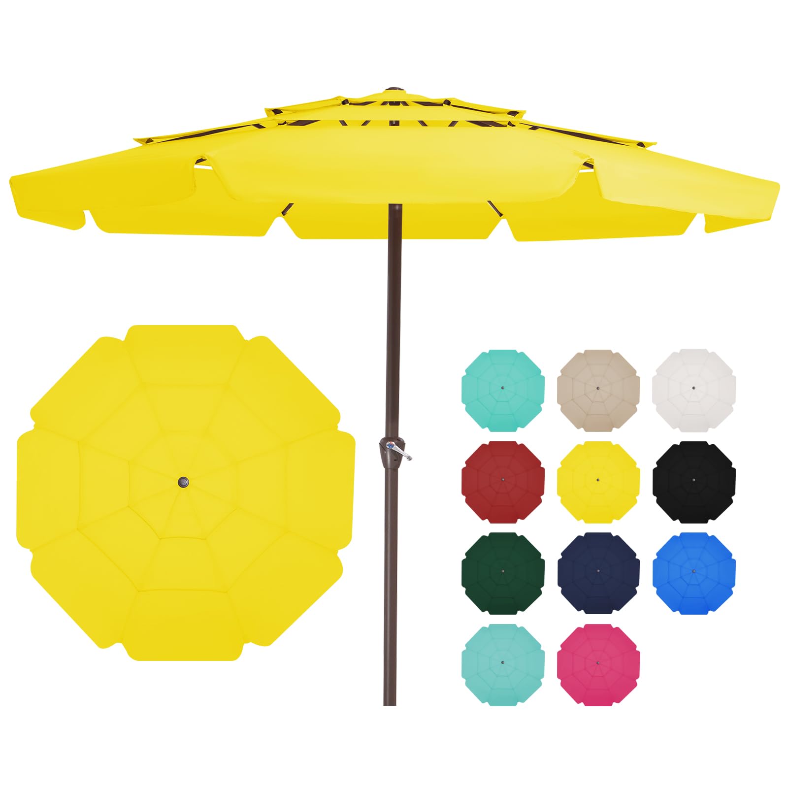 JEAREY Sombrillas de patio de 3 niveles de 11 pies, sombrilla de mesa al aire libre con manivela sin inclinación, sombrilla de mer