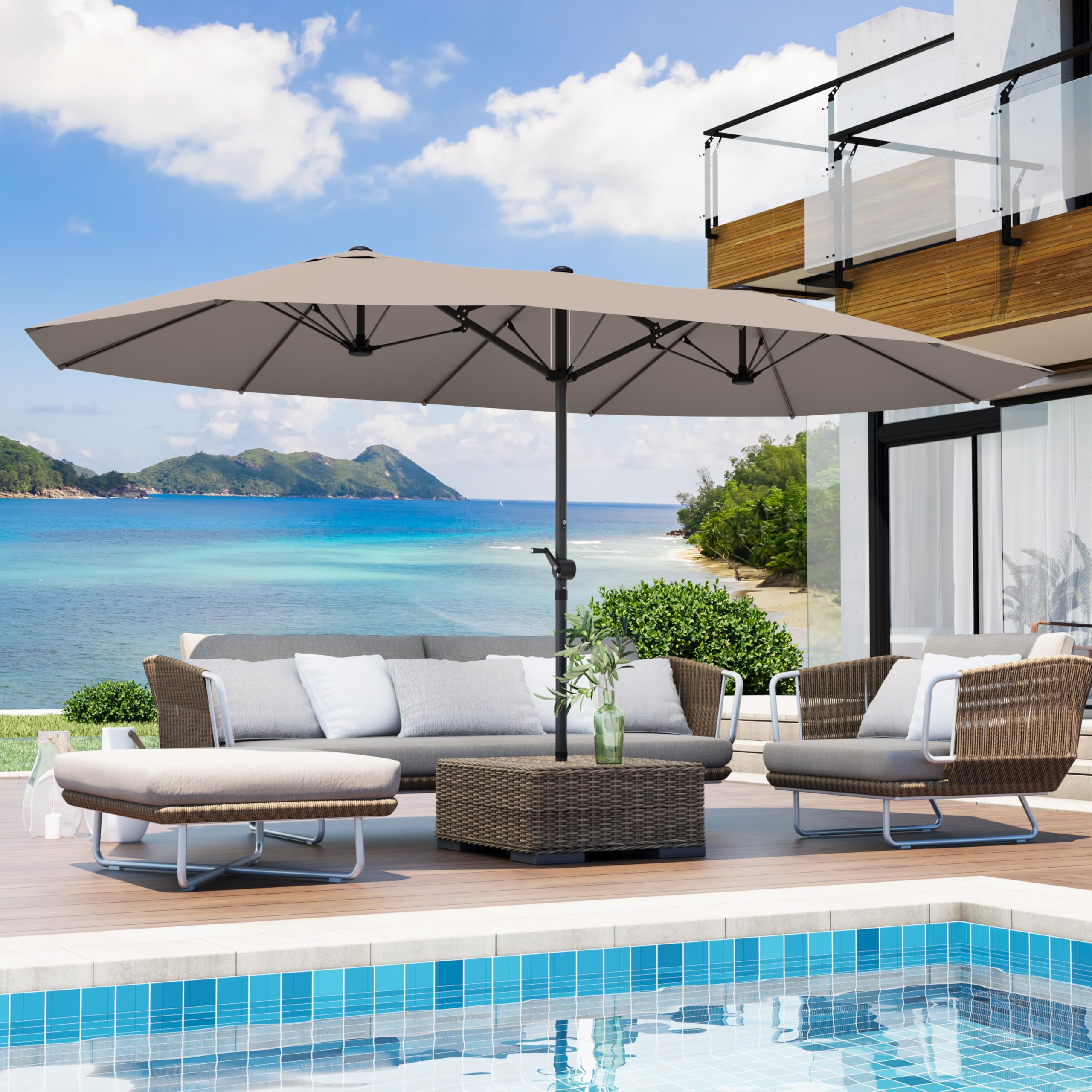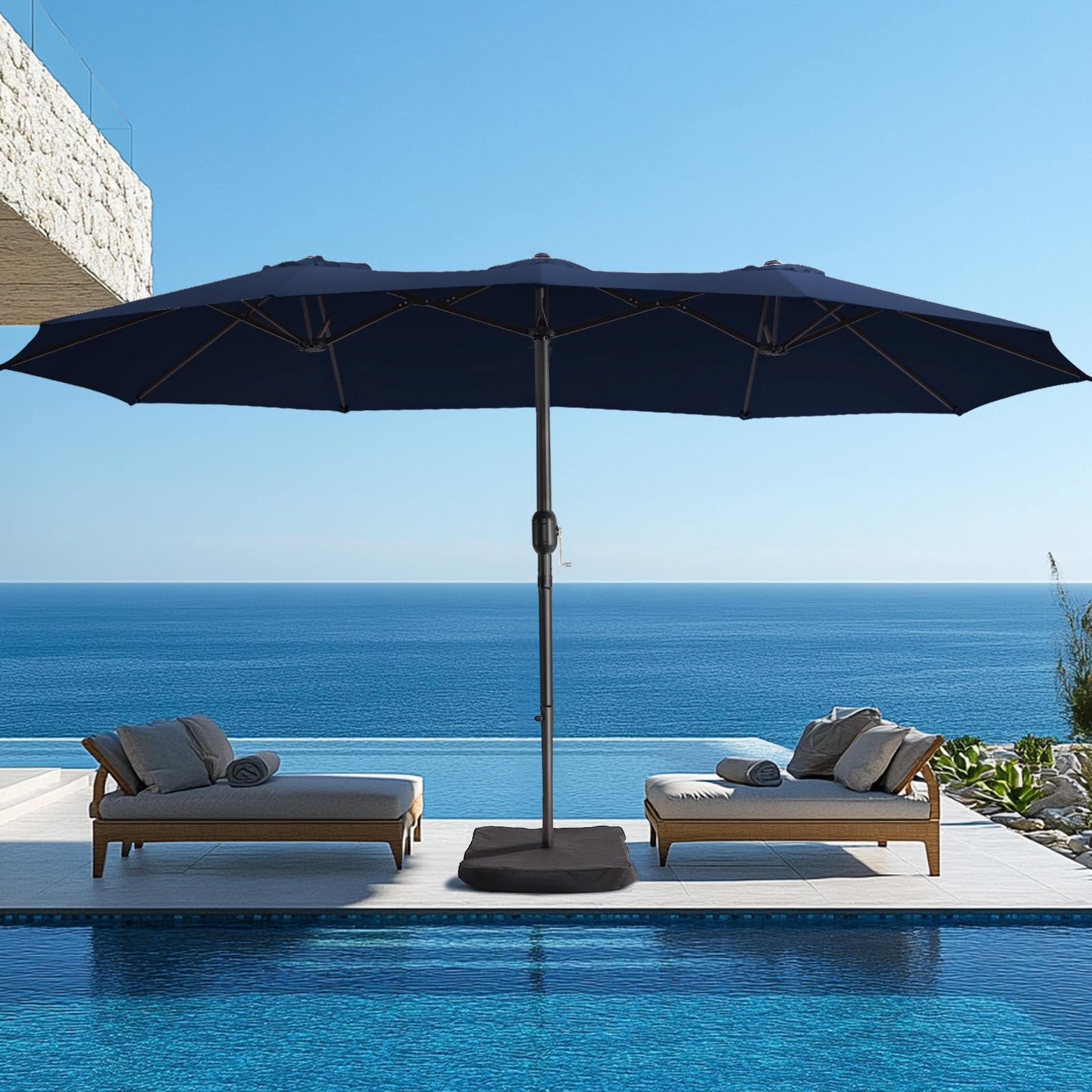 wikiwiki Sombrillas grandes de patio de 15 pies con base incluida, sombrilla de doble cara para exteriores con manivela, potente p
