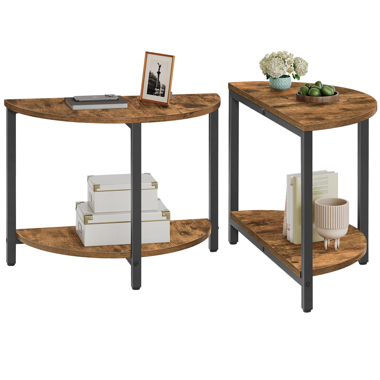 KF02BR – Juego de 2 mesas auxiliares semicirculares de 23.6 pulgadas, mesa de media luna, mesitas de noche de 2 niveles con estant