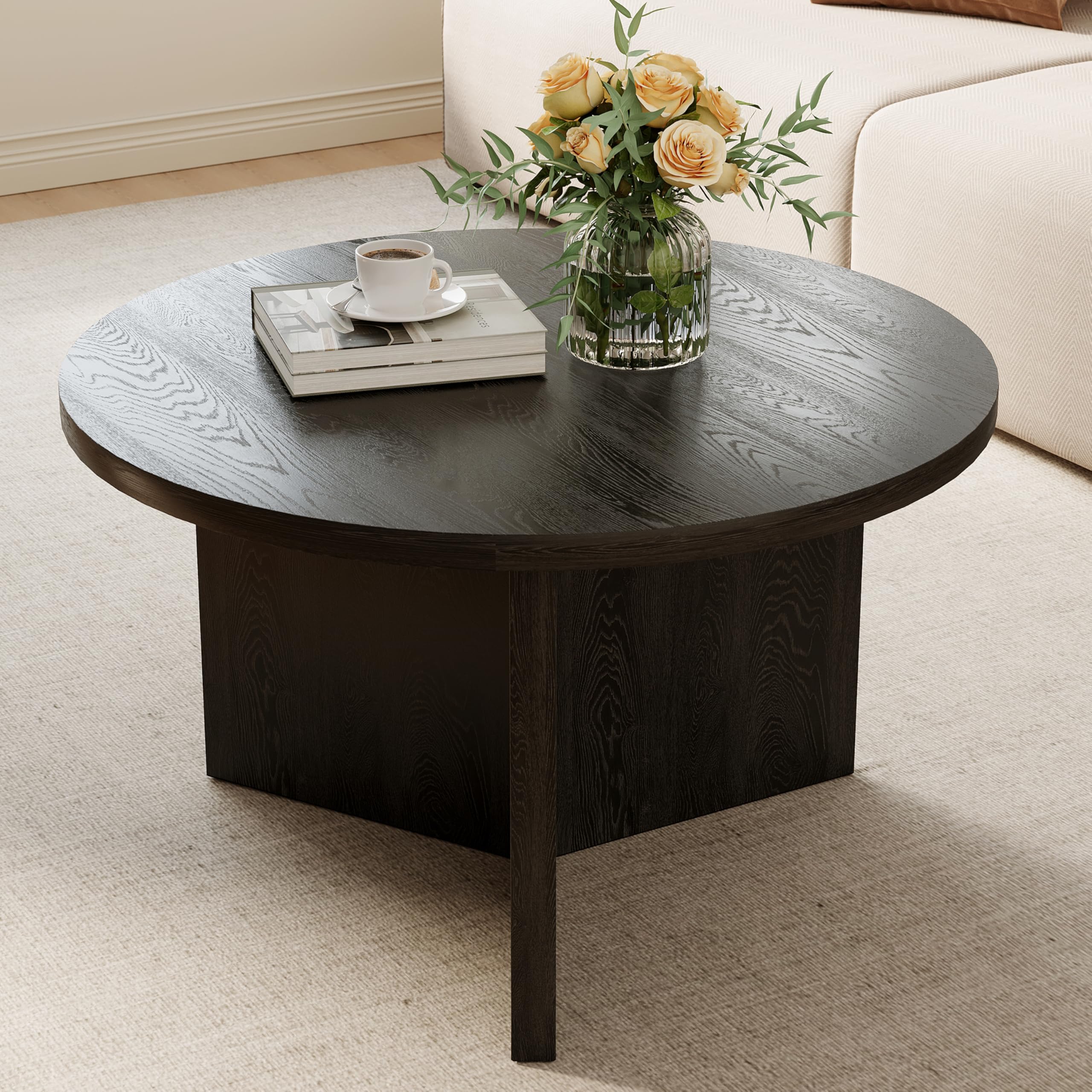 Lavish Home Mesa de centro redonda con base de metal geométrica, muebles pequeños y modernos para sala de estar, mesa de centro de