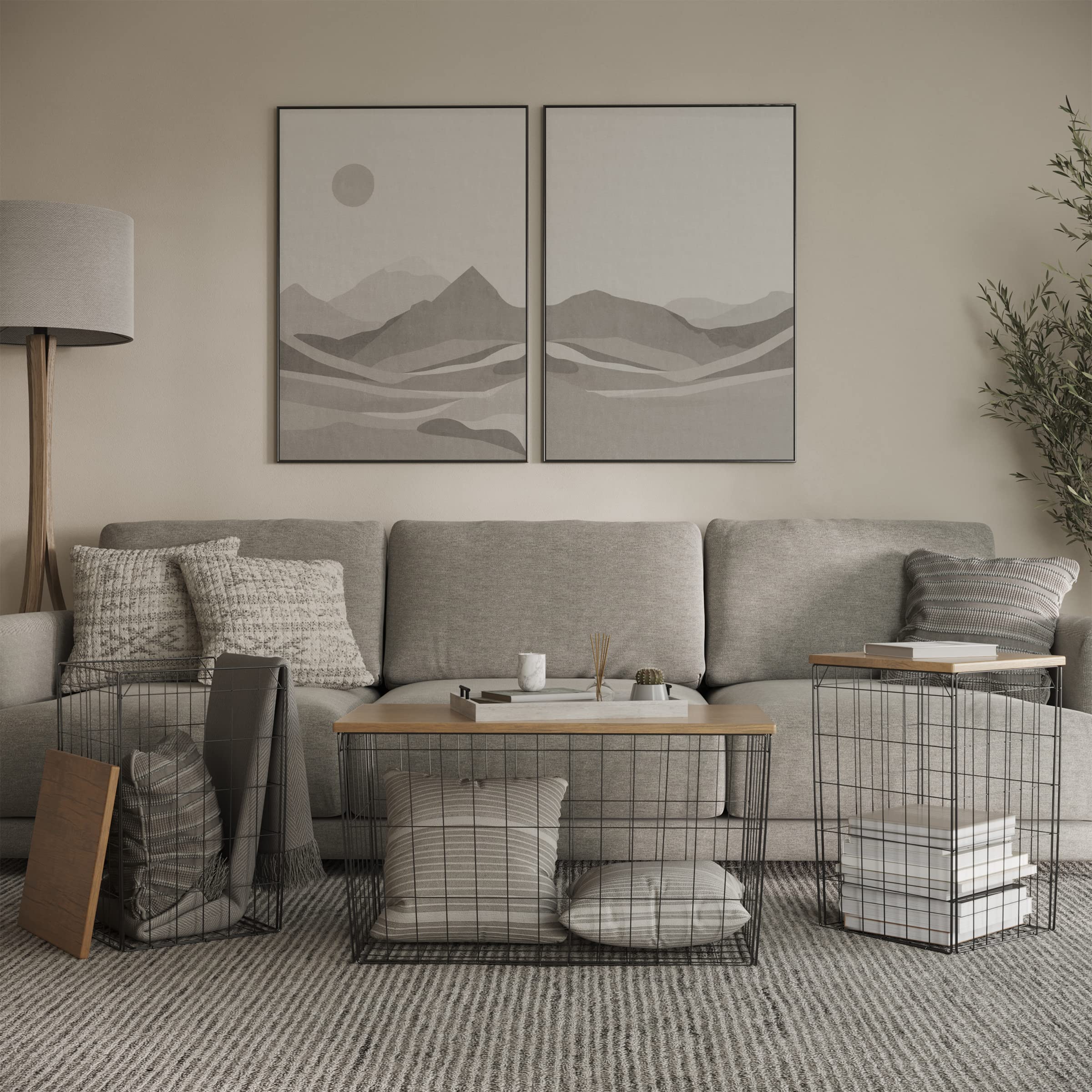 Lavish Home – Juego de 3 mesas de sala de estar, cesta de metal con tapas extraíbles, 2 laterales pequeños y 1 mesa decorativa gra