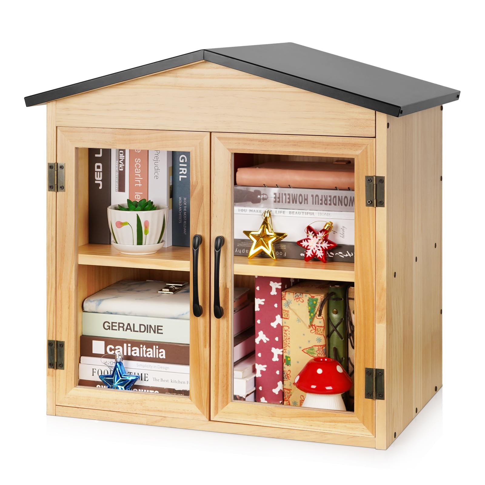 Pequeña biblioteca al aire libre, biblioteca pequeña de 2 niveles para vecindarios, escuela comunitaria, madera maciza resistente
