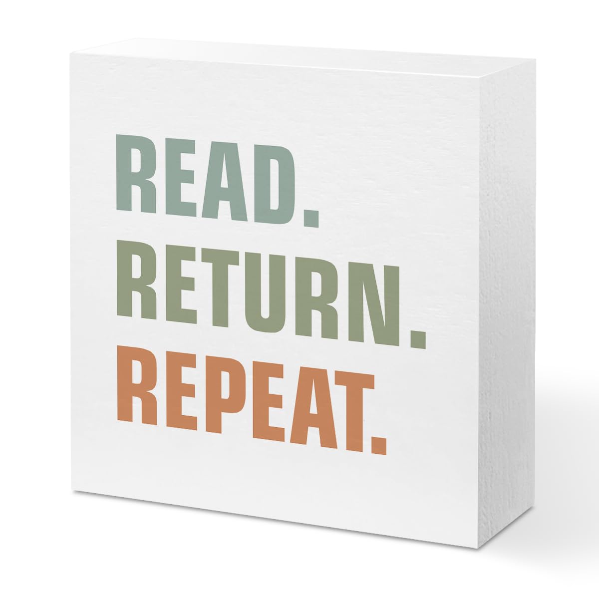 Letrero de placa de madera con texto en inglés “Read Return Repeat Table”, decoración de biblioteca del hogar, soporte de madera p