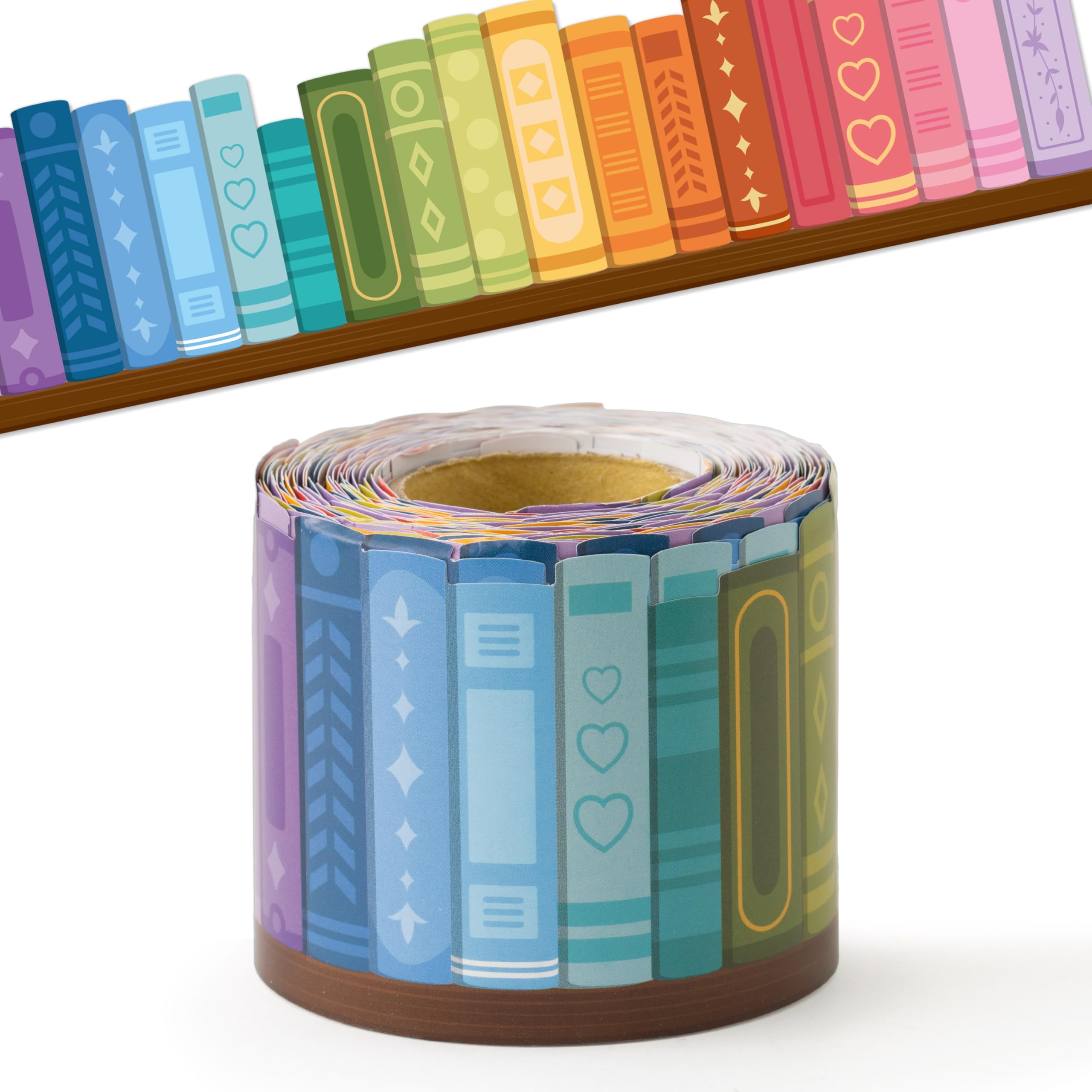 BeYumi Colorido borde de estantería – 65 pies de vuelta a la escuela, borde enrollado, estante de anuncios, juego de tablón de anu