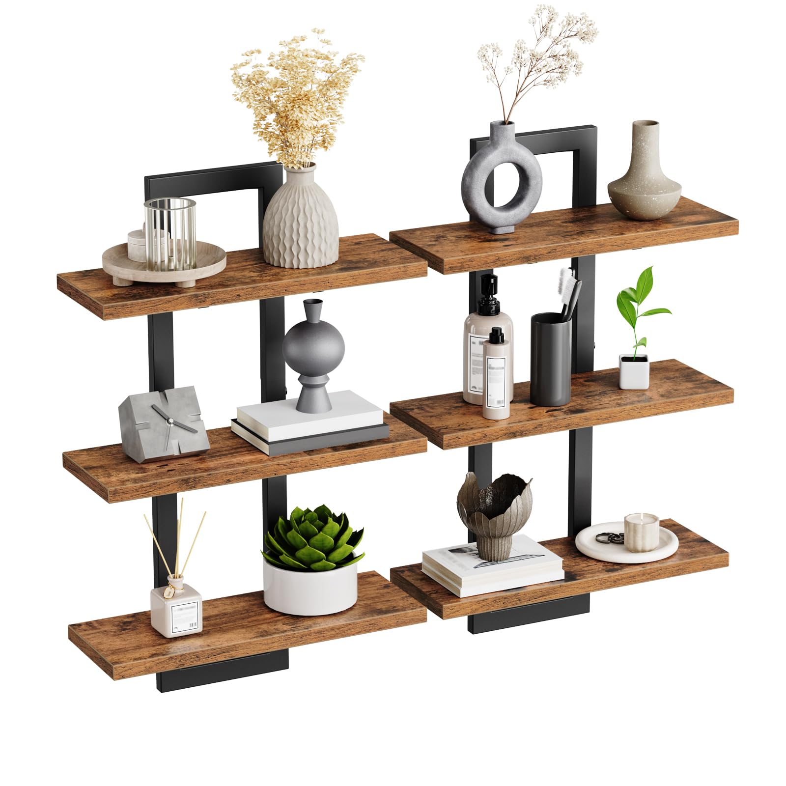 HOOBRO Estantes flotantes, juego de 2 estantes de pared, estantes de almacenamiento montados en la pared de 3 niveles, estantes de