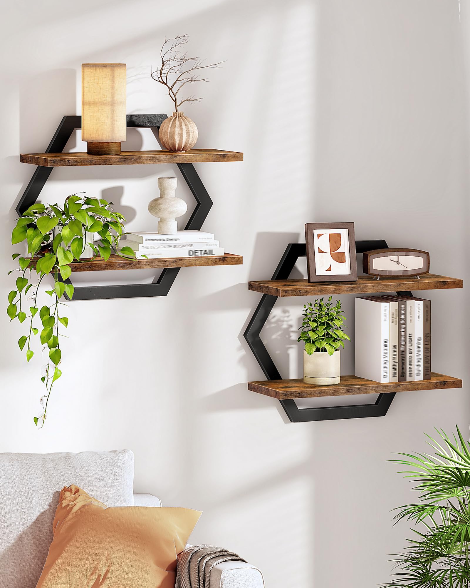 Estantes flotantes hexagonales para pared, juego de 2, estantes colgantes de 2 niveles, estantes de almacenamiento montados en la