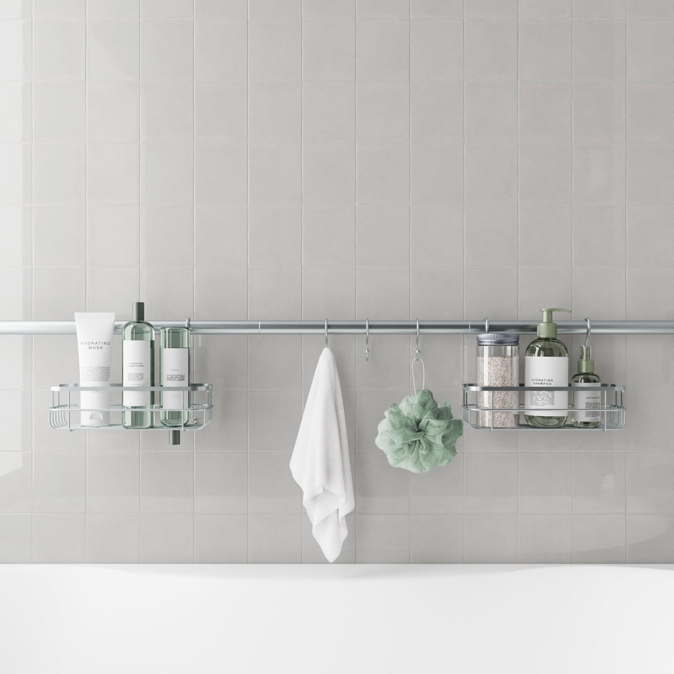 Zenna Home Organizador de baño, soporte de tensión horizontal ajustable entre la pared, sistema de almacenamiento de ducha con 2 c