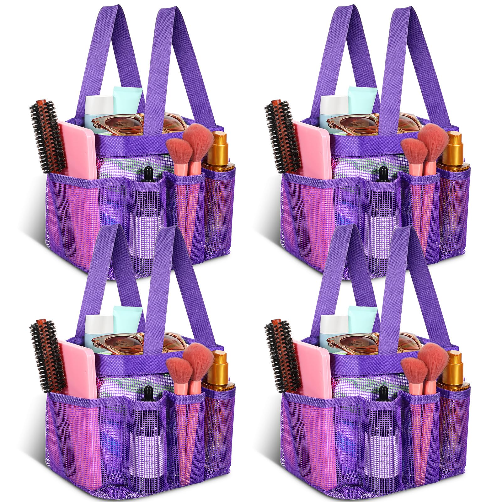 Hillban 4 unidades de malla para ducha, portátil, grande, de secado rápido, con 8 bolsillos más profundos y 2 asas, bolsa colgante