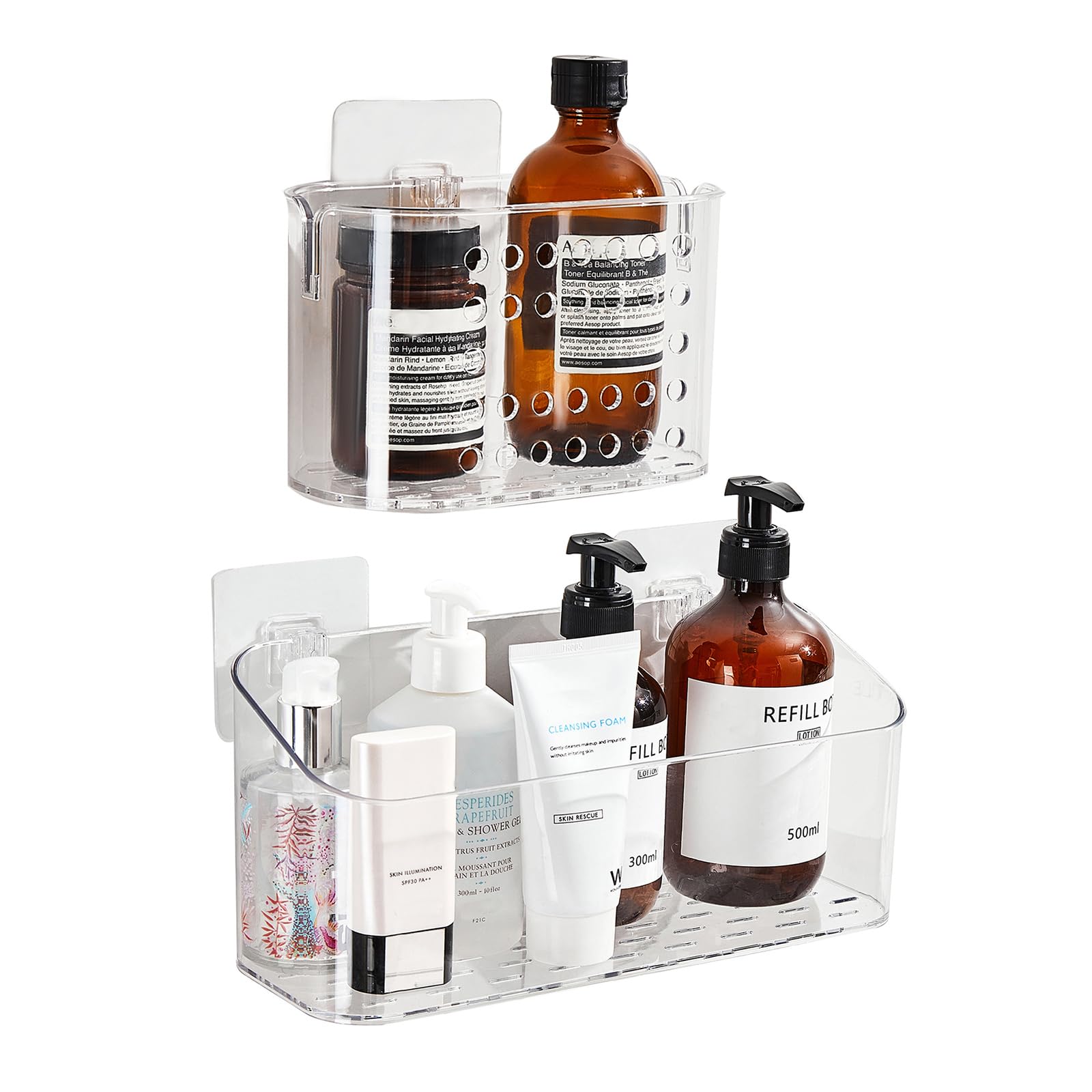 AITEE Organizador de baño acrílico, soporte para champú transparente montado en la pared, organizador de ducha con ventosa, sin pe