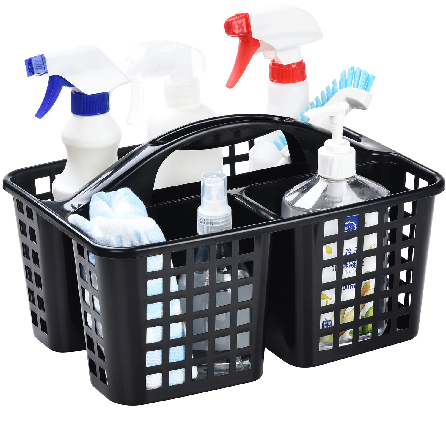 Haundry Cesta de ducha de plástico con 3 compartimentos, organizador portátil de almacenamiento de suministros de limpieza dividid