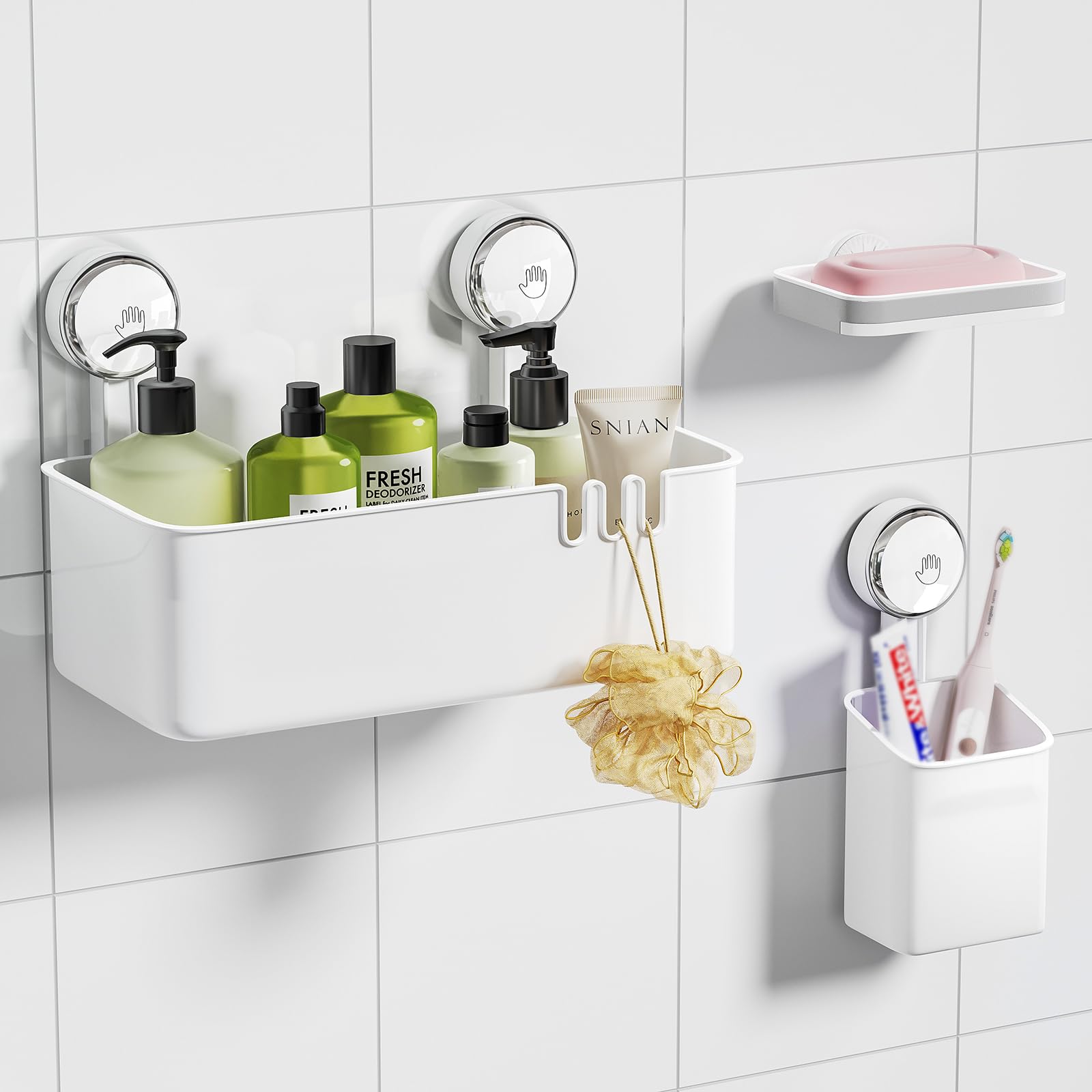 Juego de 3 cestas de plástico para ducha con ventosas, cesta de ducha, soportes para cepillos de dientes, soporte para jabón, esta