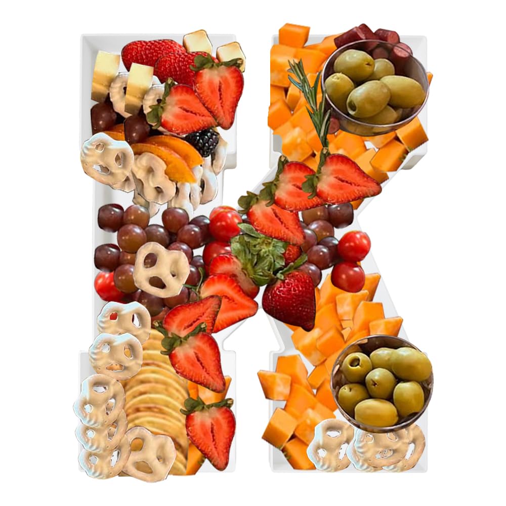 Caja de charcutería de plástico rellenable, bandeja reutilizable en forma de alfabeto de 10 pulgadas para aniversarios de cumpleañ