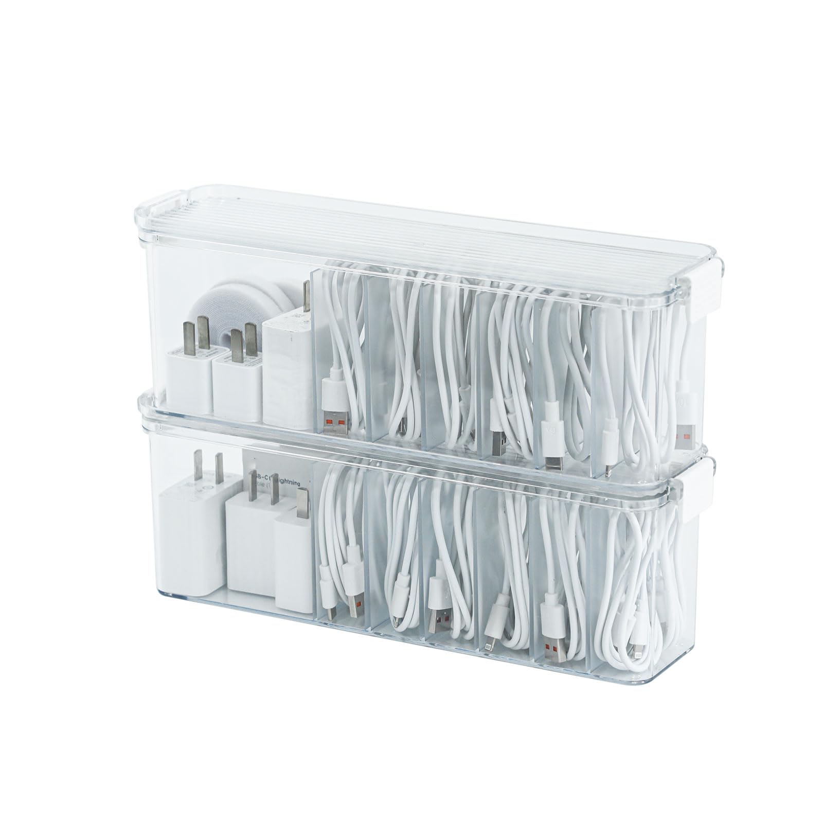 Yesesion Paquete de 2 cajas organizadoras de cables con tapa, accesorios de cajón de escritorio transparente, estuche de almacenam