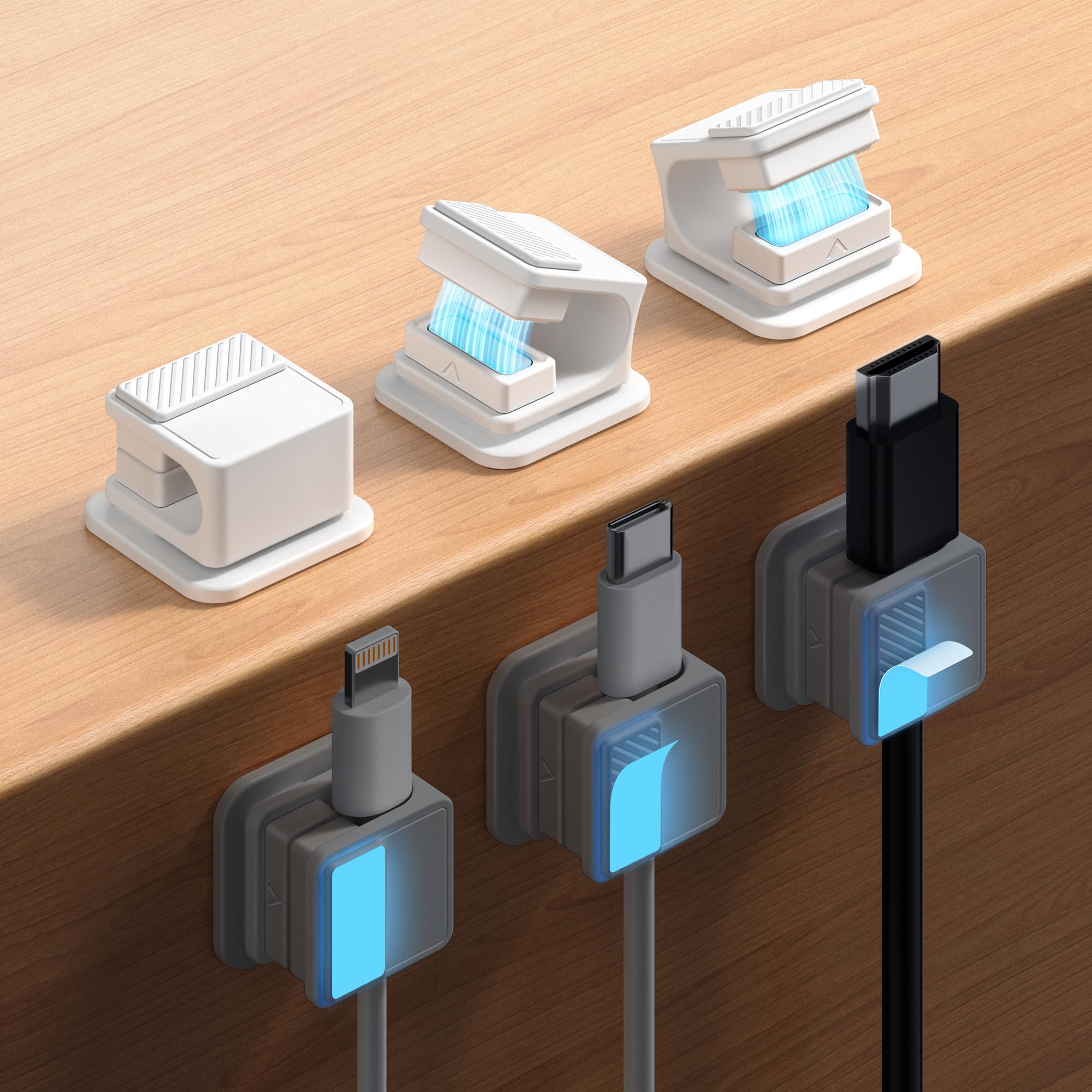 AhaStyle Organizador magnético de cables [1s Lock] Paquete de 6 soportes para cables de cable, clips adhesivos fuertes para cables