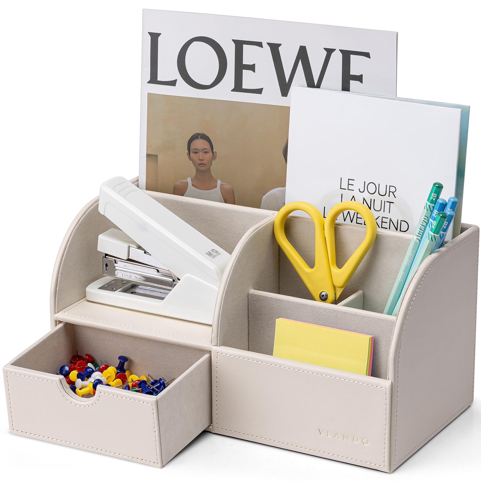 Vlando Organizador de escritorio de oficina Organizador de escritorio de cuero con cajón para almacenar suministros de escritorio