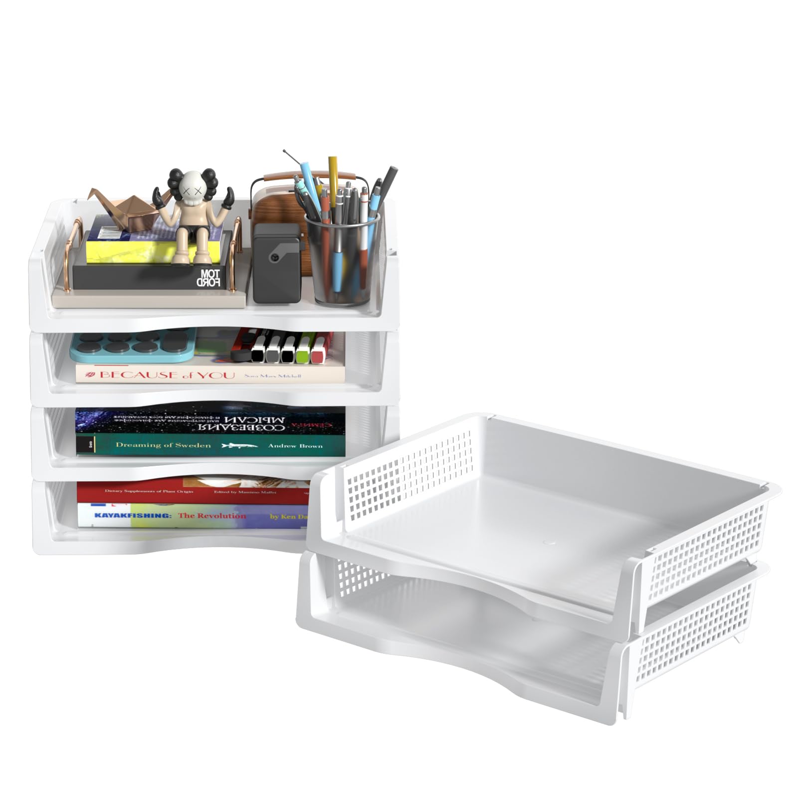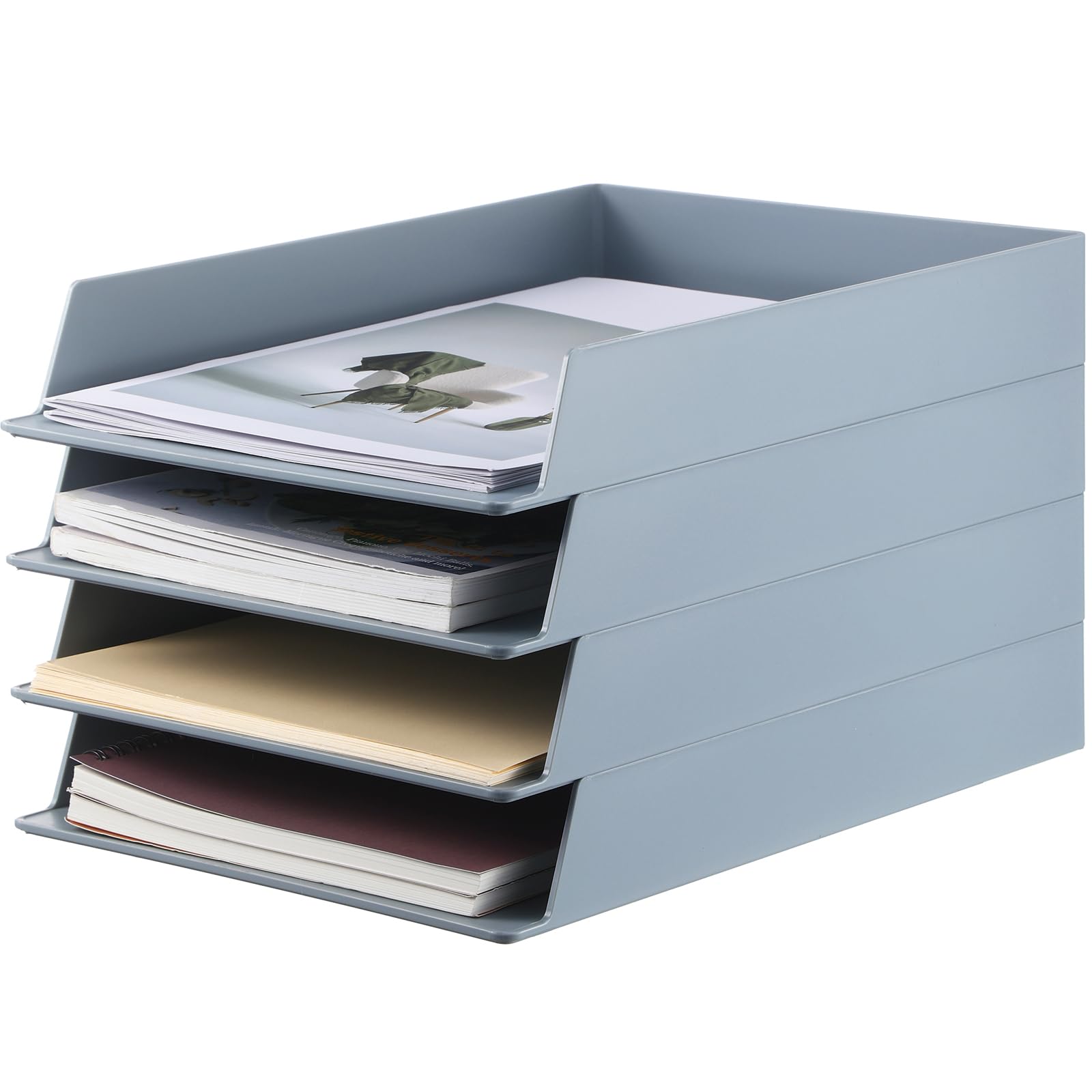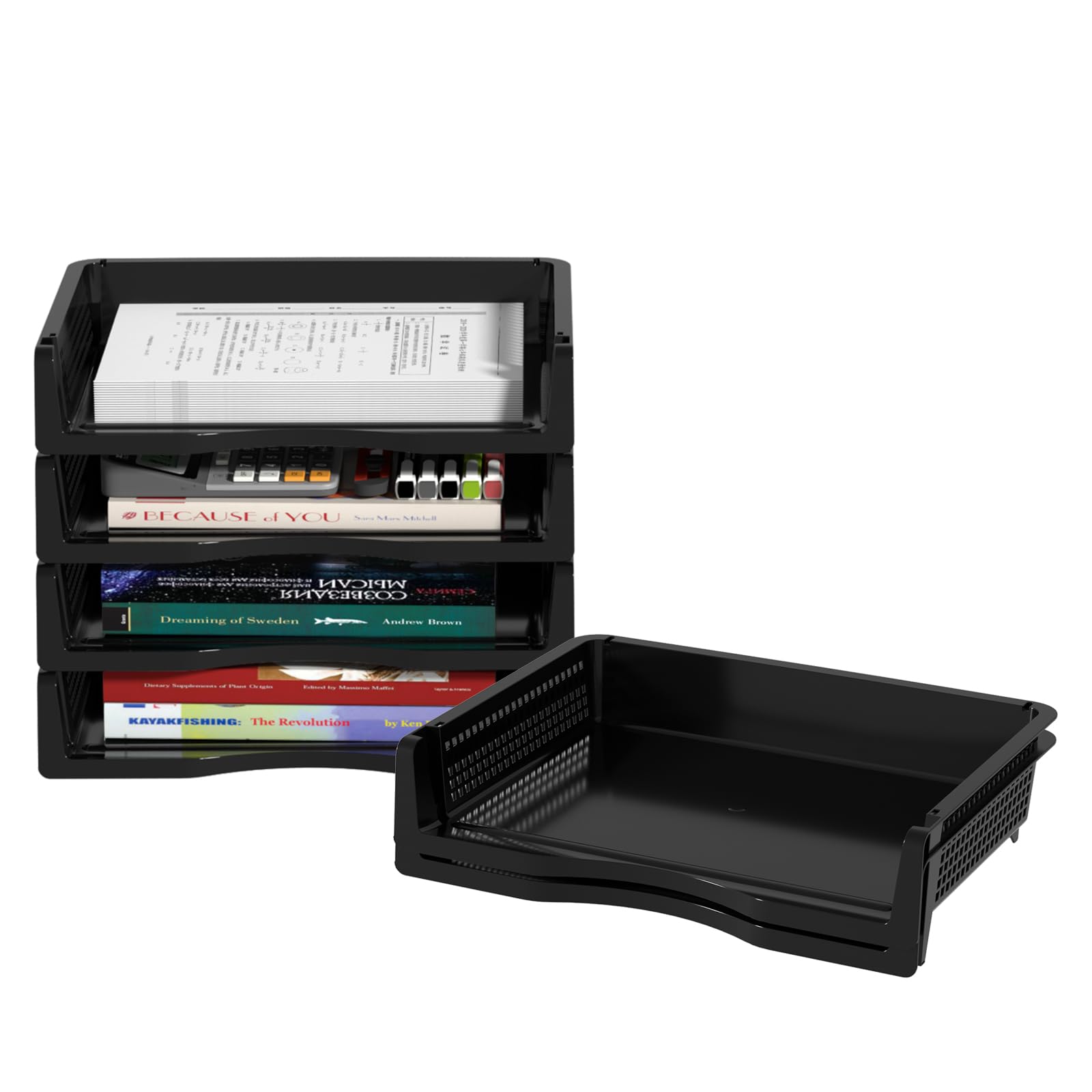 Wenqik 4 bandejas de papel apilables rectangulares de plástico para escritorio, organizador de archivos de documentos, cartas de a