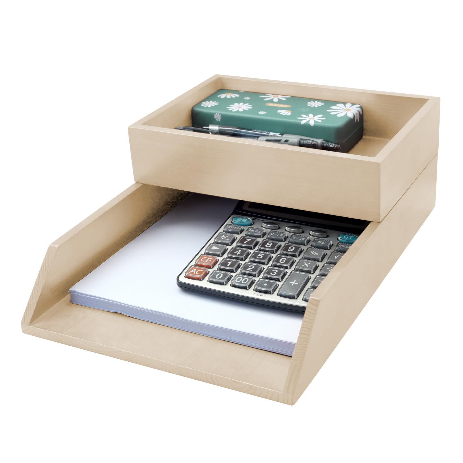 Bandeja de madera de 2 niveles, organizador de escritorio de madera, bandeja de tamaño carta, organizador de archivos de documento